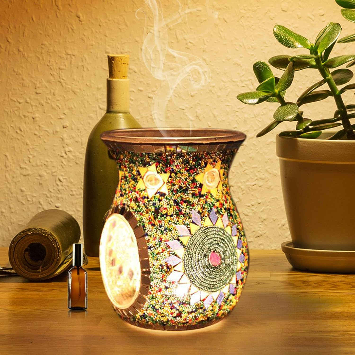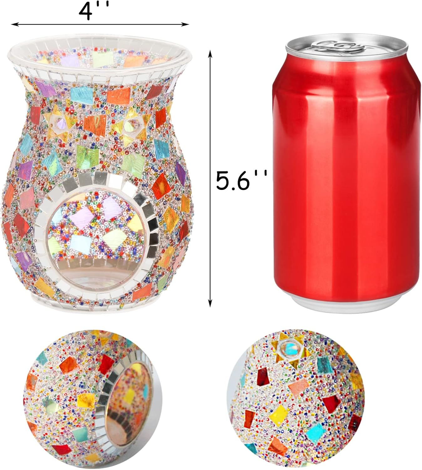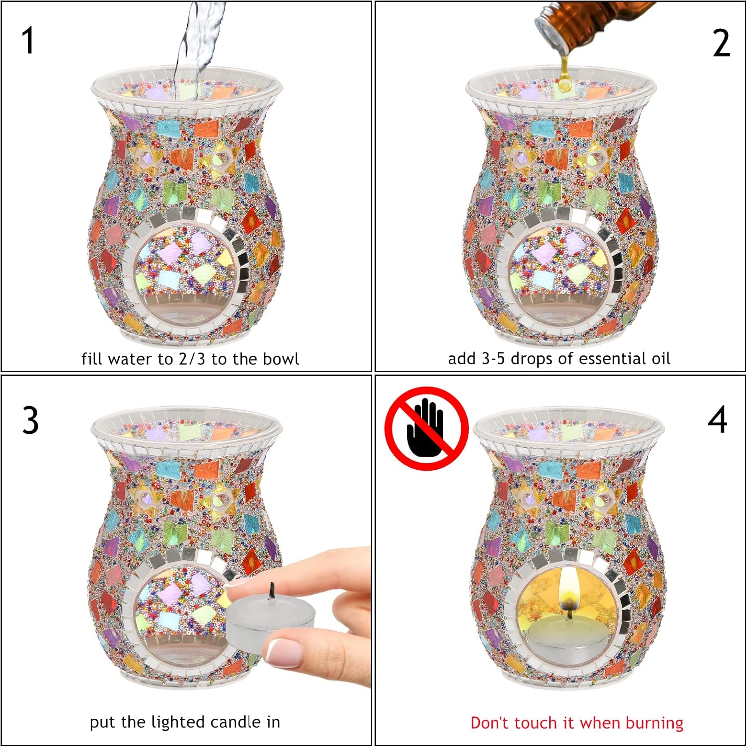- Exquisite Craftsmanship: The mosaic glass oil burner is 100% handmade, double-layer mosaic and borosilicate glass are not easy to break.