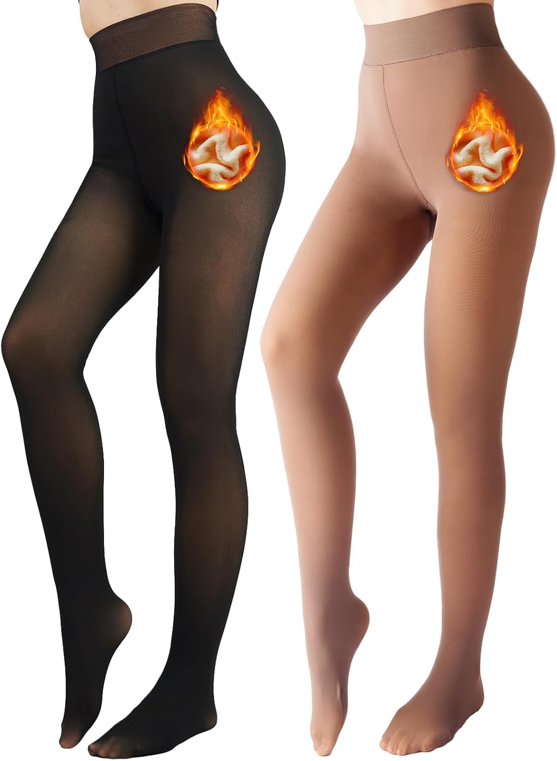 Sheer fleece lined tights fits well with dresses, skirts, boots, high heels, etc, Wear a dress on a pretty cold day or comfortably wear them under your pants, perfect for winter.