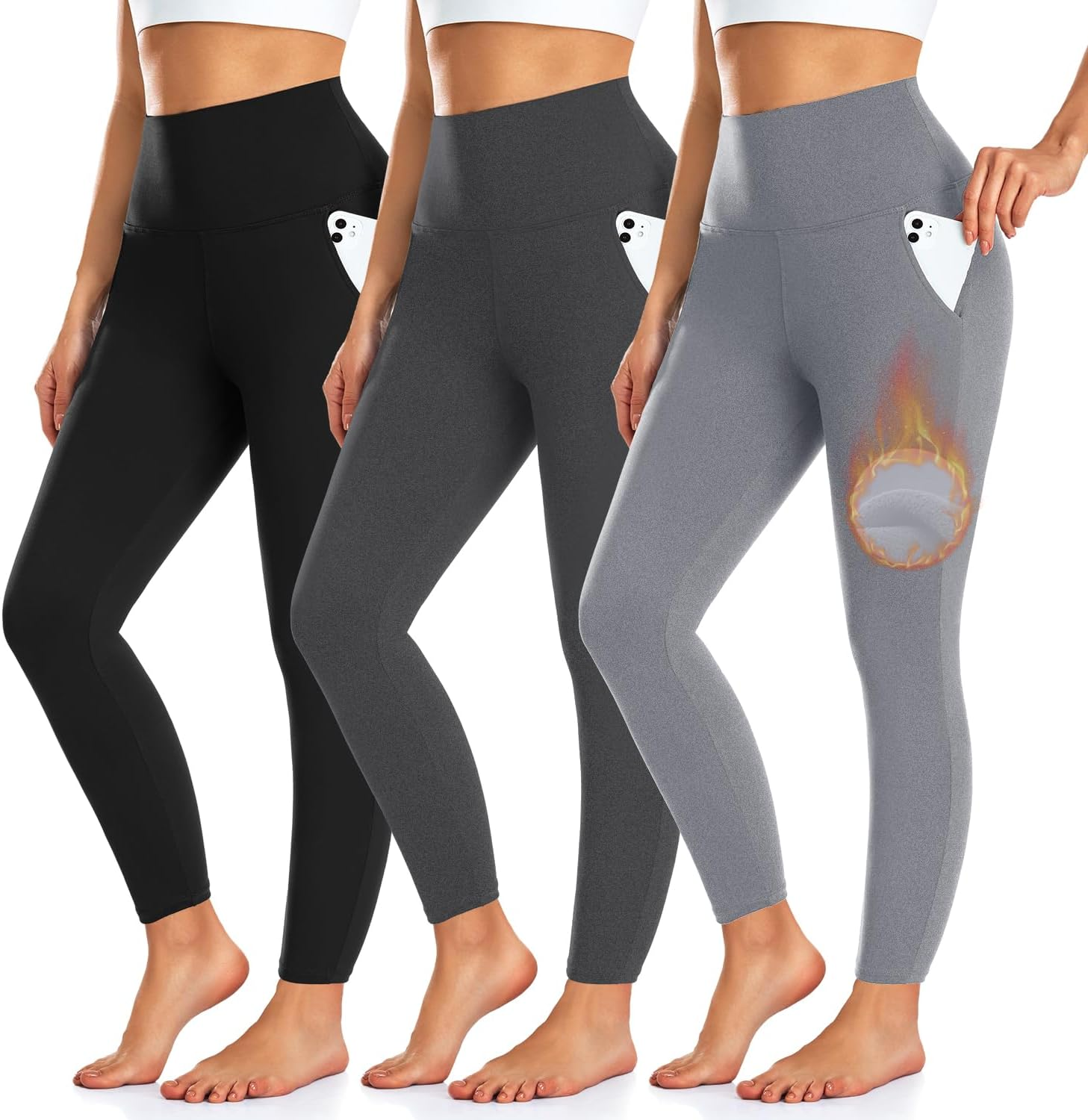 3 Pack Fleece Lined Leggings Women with Pockets -Warm Winter Yoga Pants for Wome