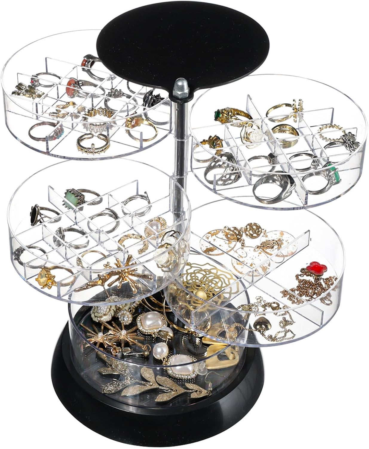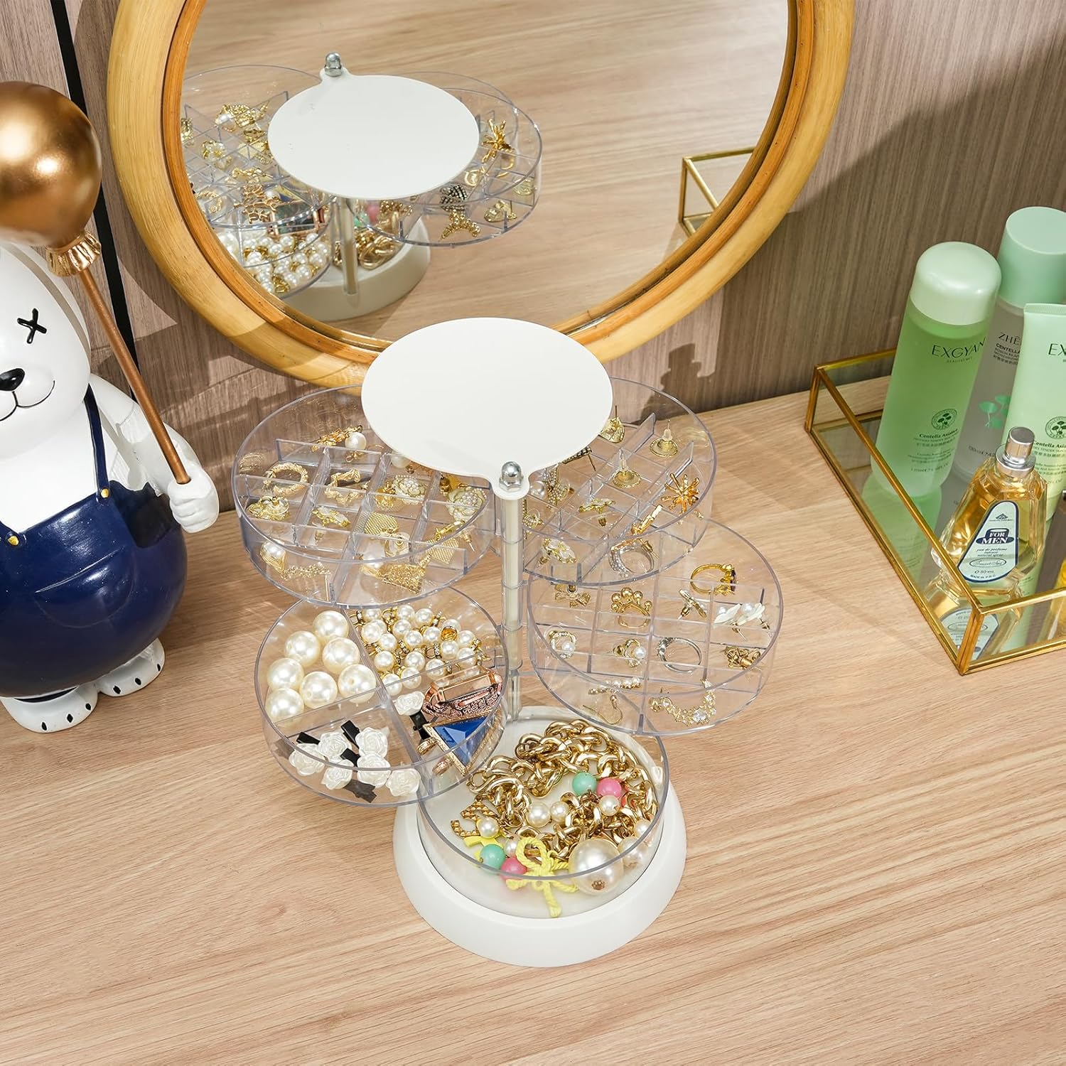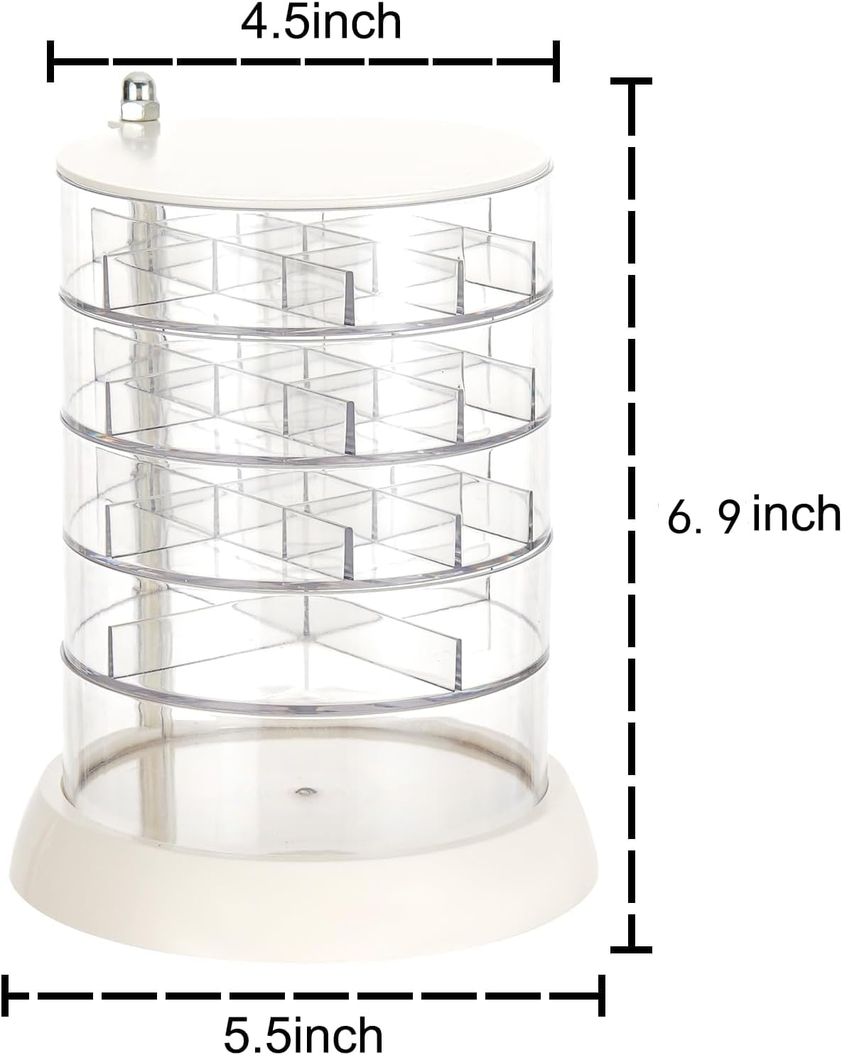 - Simple and modern style,It's a compact cylinder,5-layer design,360 degreen freely rotating with lid,when closed and isolate dust to better maintain the luster of jewelry,excellent dressing table decor.