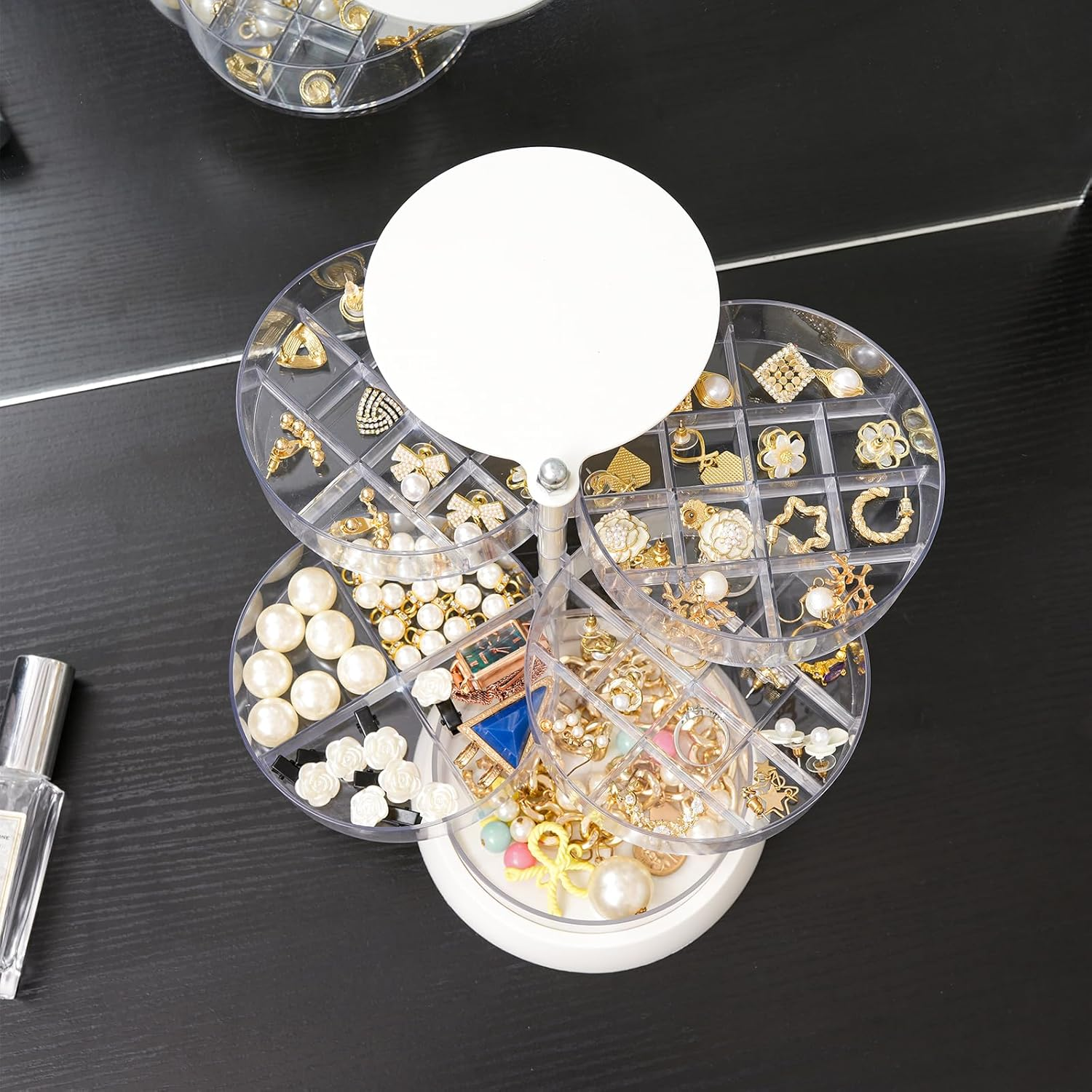 360 degreen freely rotating with lid,when closed and isolate dust to better maintain the luster of jewelry,excellent dressing table decor.