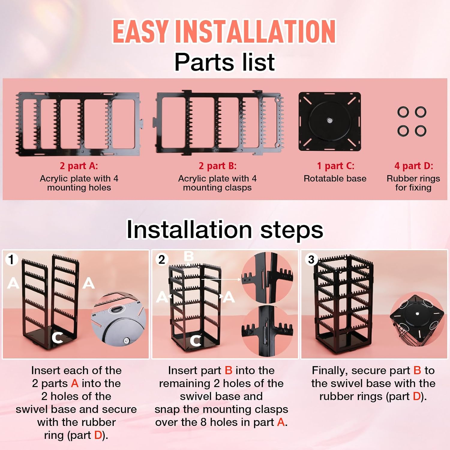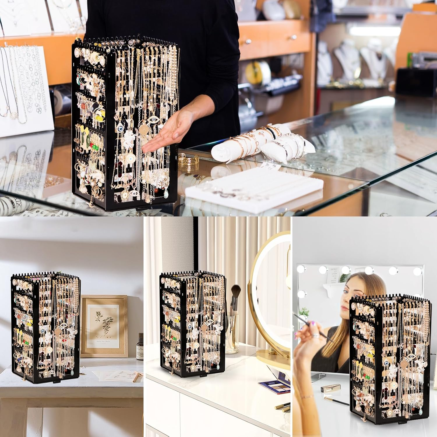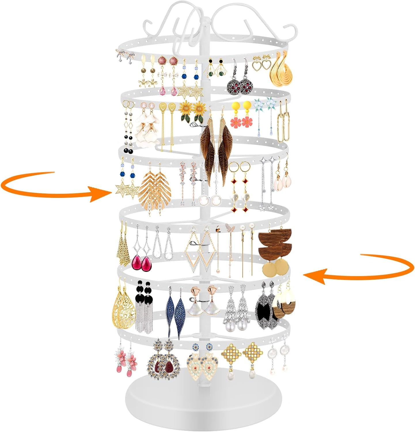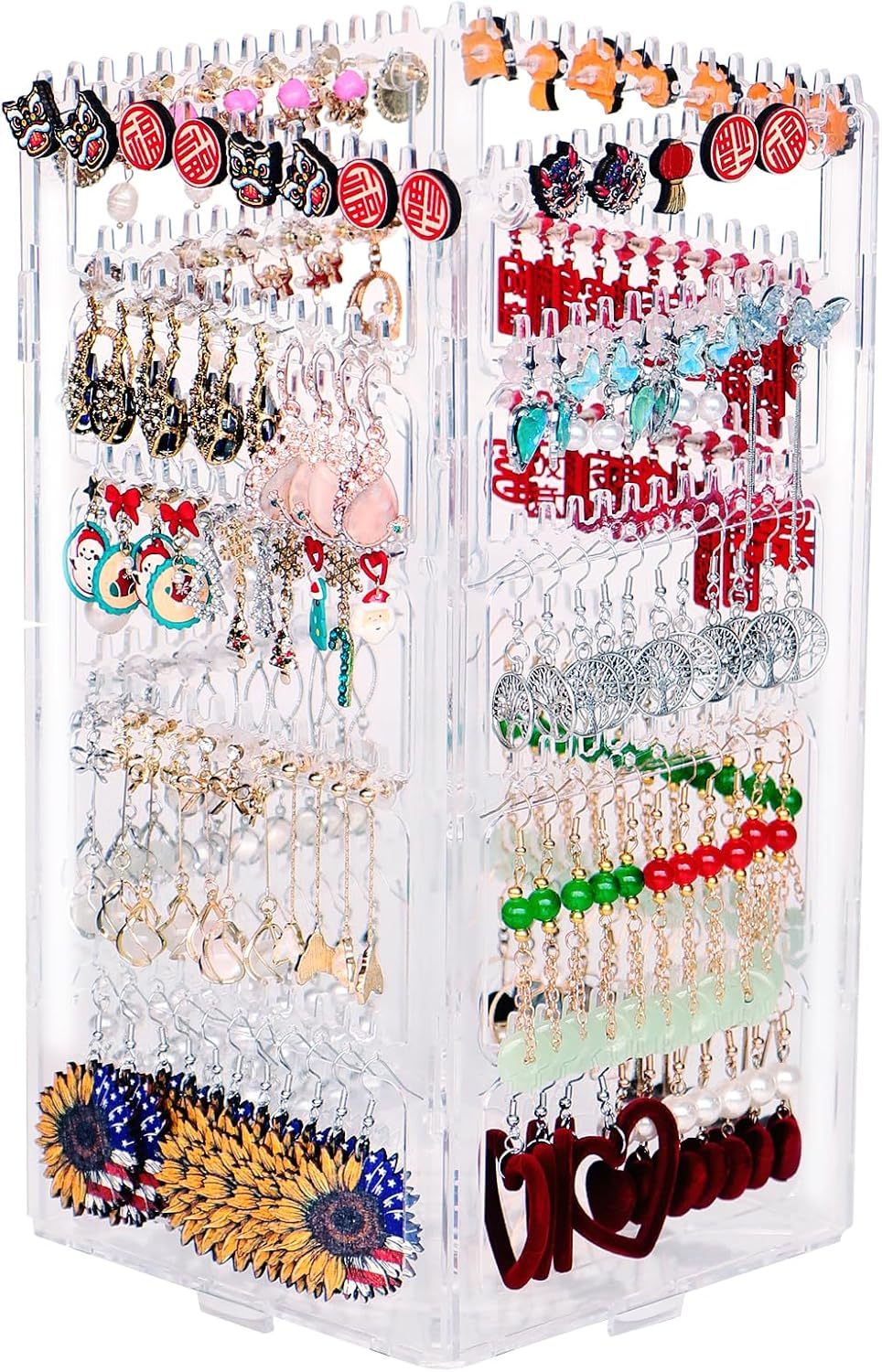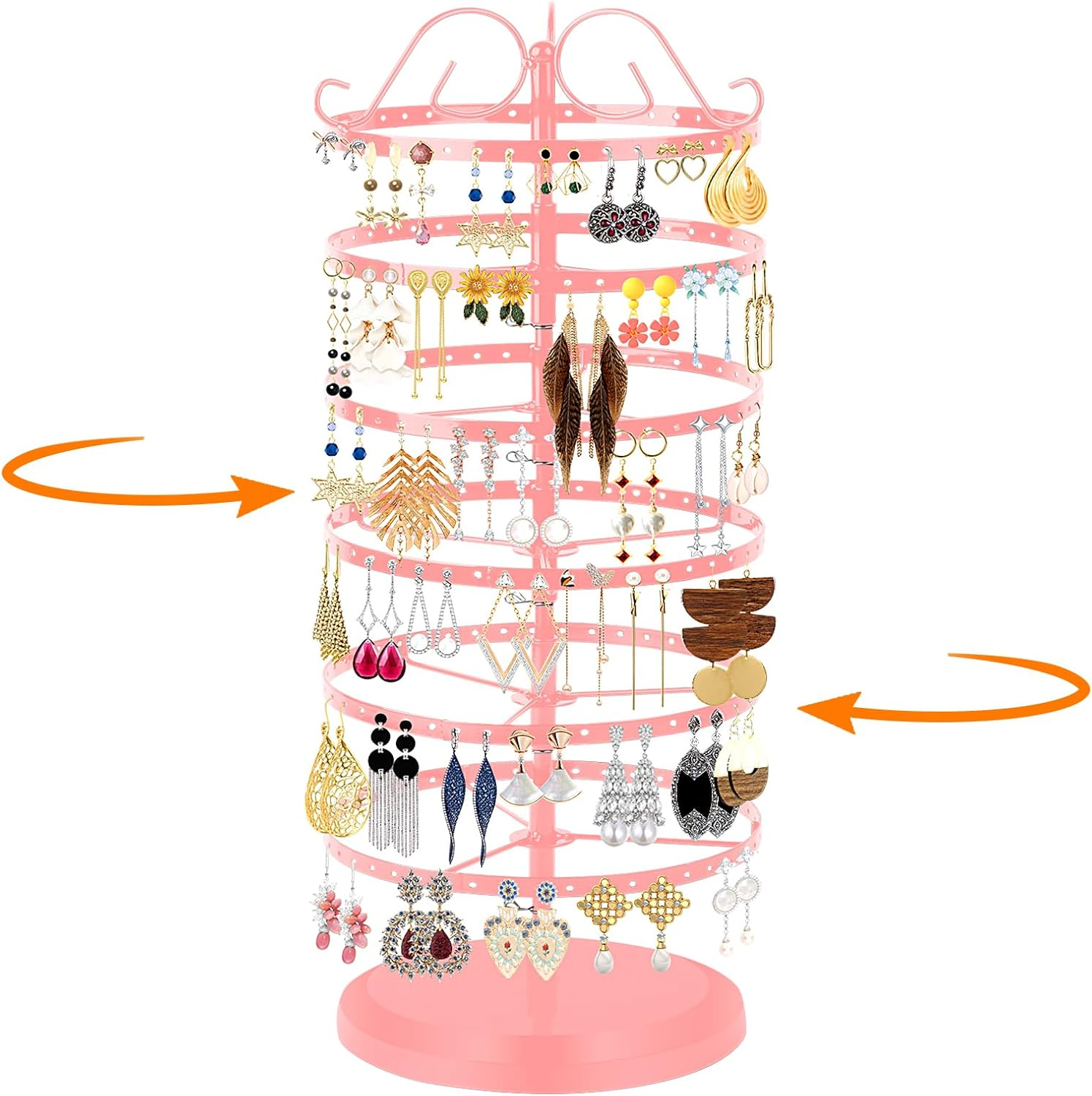 5 tiers, over 200 holes and grooves, 360-degree rotation, easy to use. These features made it a popular earring organizer and display rack.