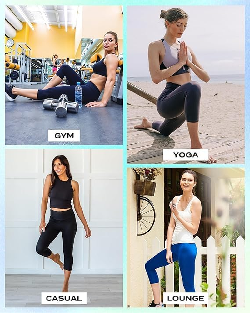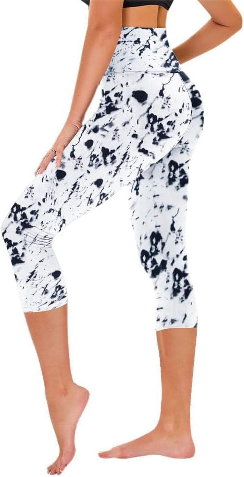 Capri Leggings for Women - Tummy Control Black Leggings with Pockets High Waisted Yoga Pants Workout Cycling Leggings