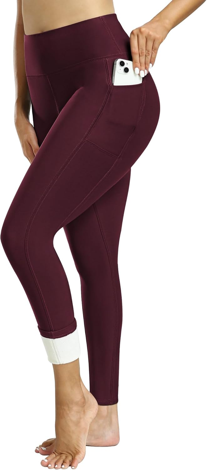 CHRLEISURE Fleece Lined Leggings Women with Pockets - Winter Warm Thermal Thick