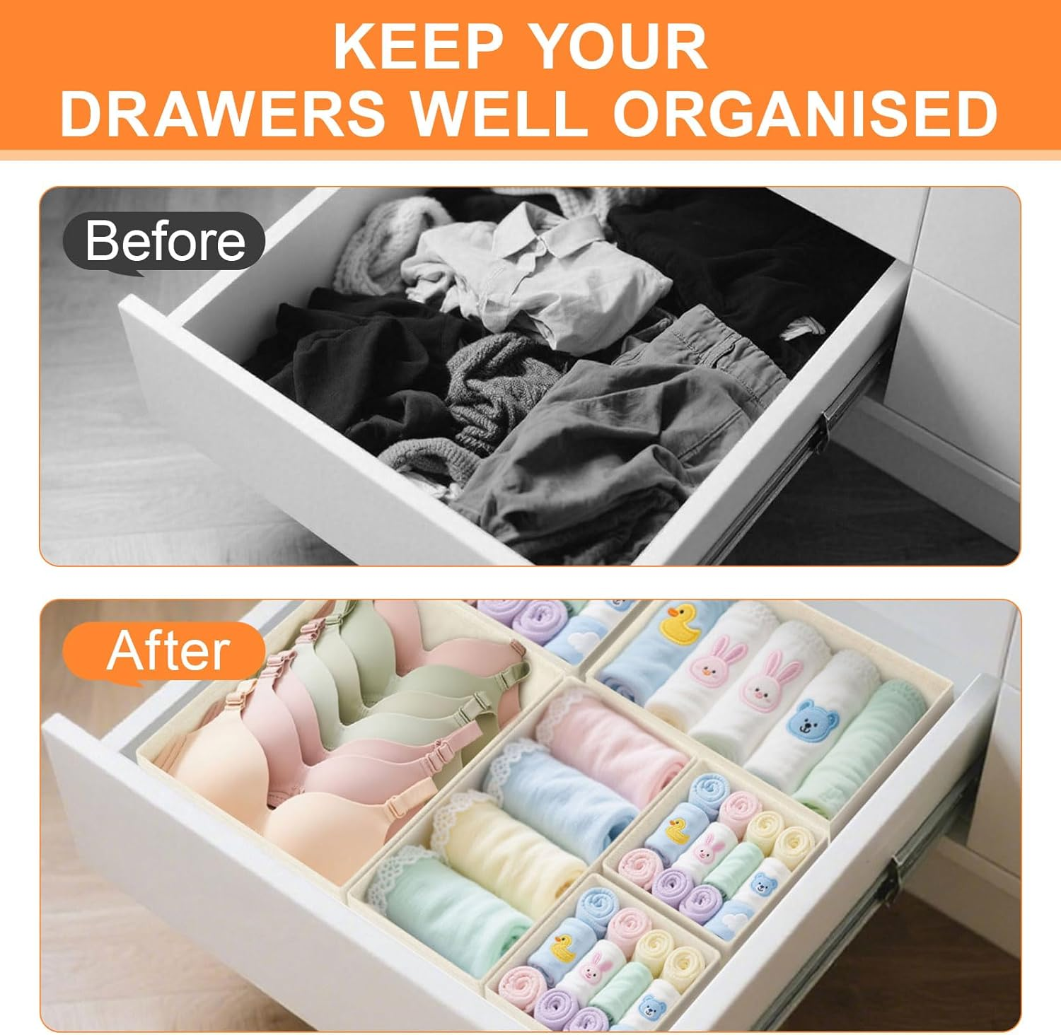 Chaos in your closet? Dorisuno 6-piece drawer organizers transform clutter into clarity. Compact, durable, and versatile—ideal for keeping socks, bras, baby items, and daily essentials in perfect order.