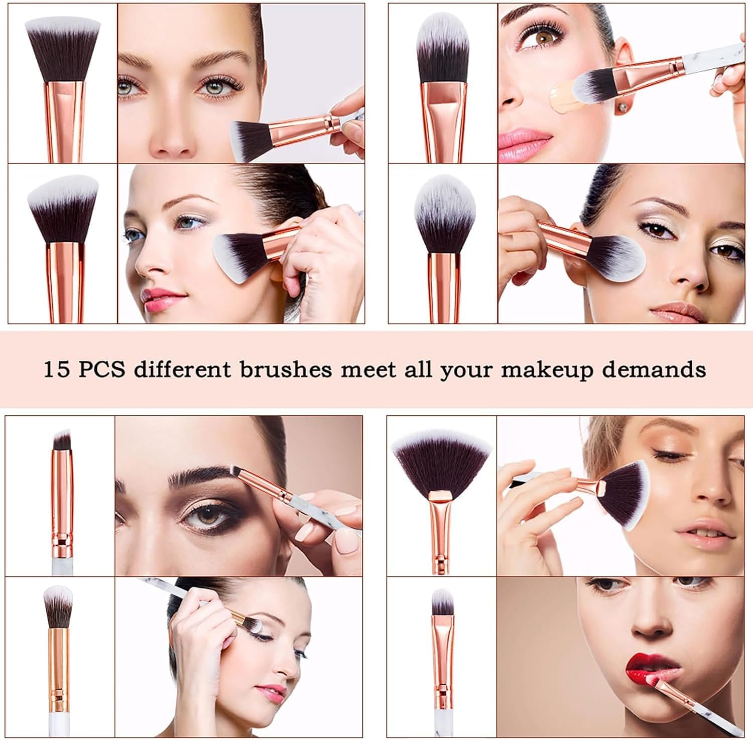 DUAIU Makeup Brushes Set Make up Brushes Professional 15Pcs Marble Makeup Brush