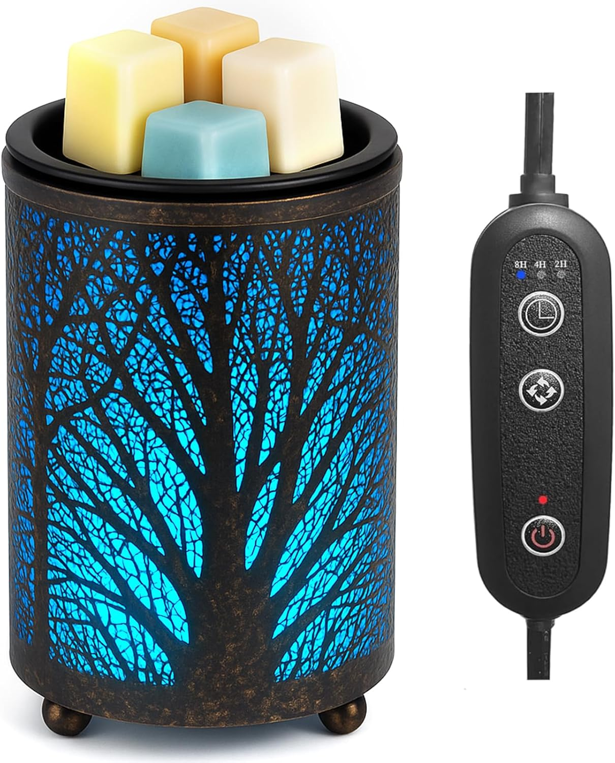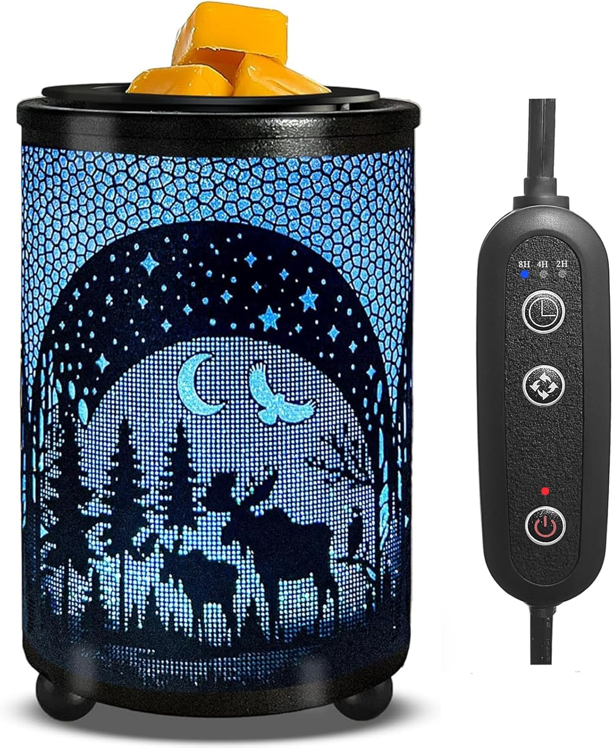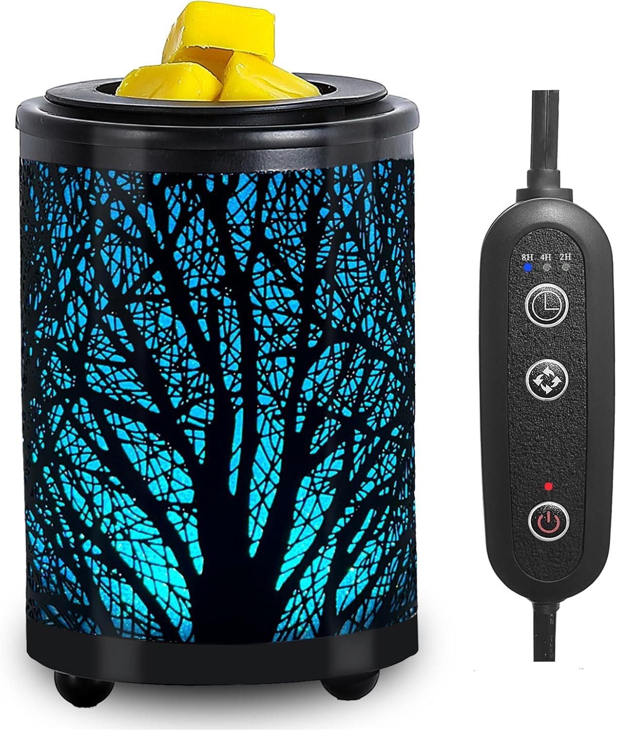 Electric Wax Melt Warmer PTC Heating Plate with 7 Colors LED Changing Light Wax Warmer Fragrance Warmer for Home Office Gifts & Decor(Black Forest)