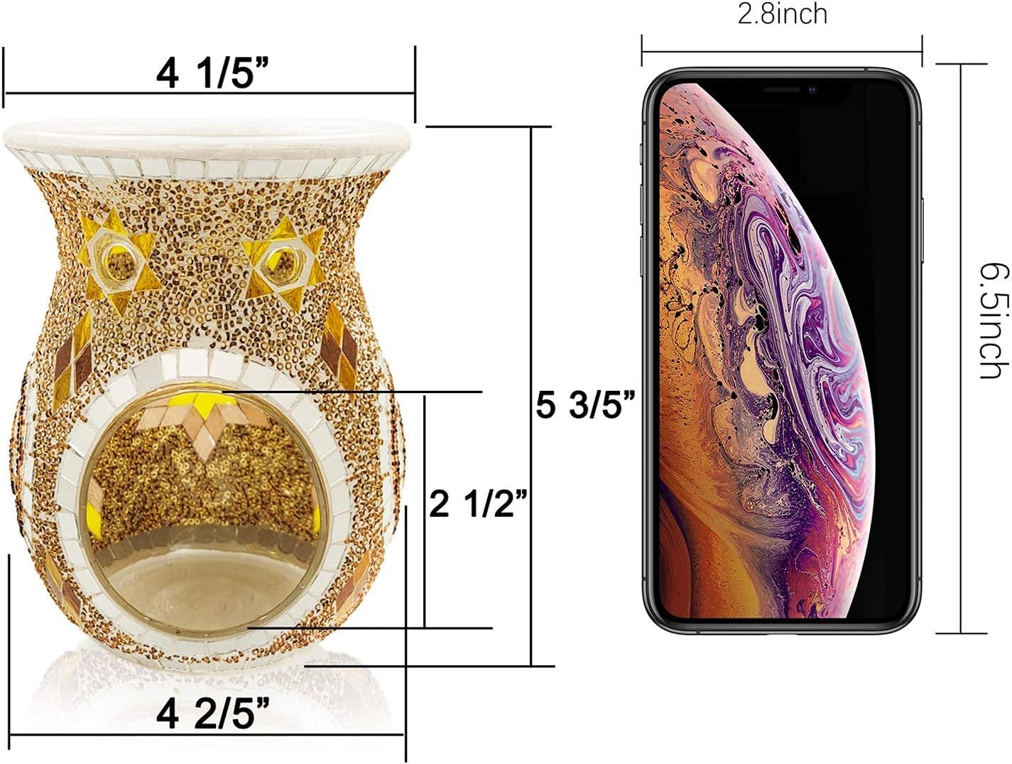 - PERFECT SIZE: The essential oil diffuser measures 5.5"H x 4.5"W x 4.5"L(Candle and essential oil are not included), not only a perfect size for table decoration but also a suitable size for travel use. The thin and light holder body enables the shape of the patch process to be realized, the double-layer mosaic and High-temperature Resistant Borosilicate Glass are not easy to be damaged