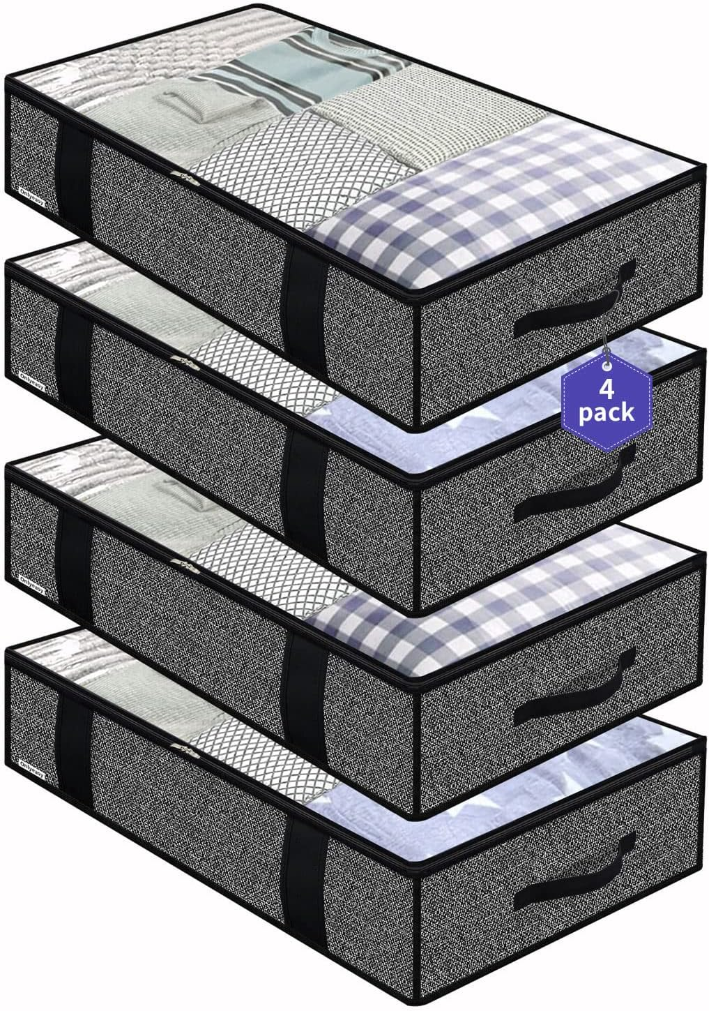 - FOUR DURABLE HANDLES - 2 front and 2 side reinforced handles make it easy and convenient for you to carry and pull out from under the bed. You can also fold this storage bag flat to save space when not in use.