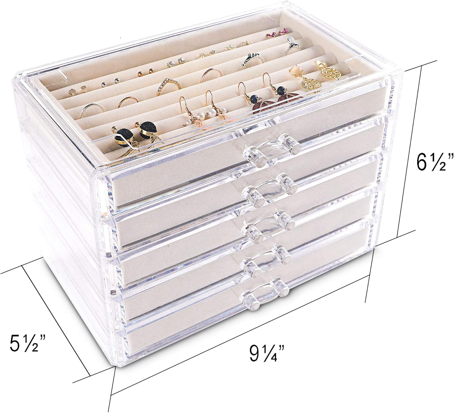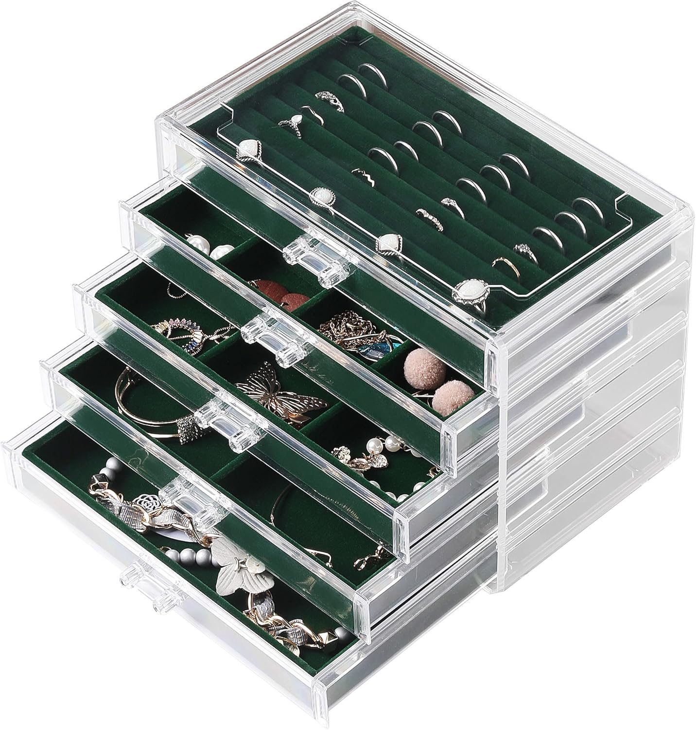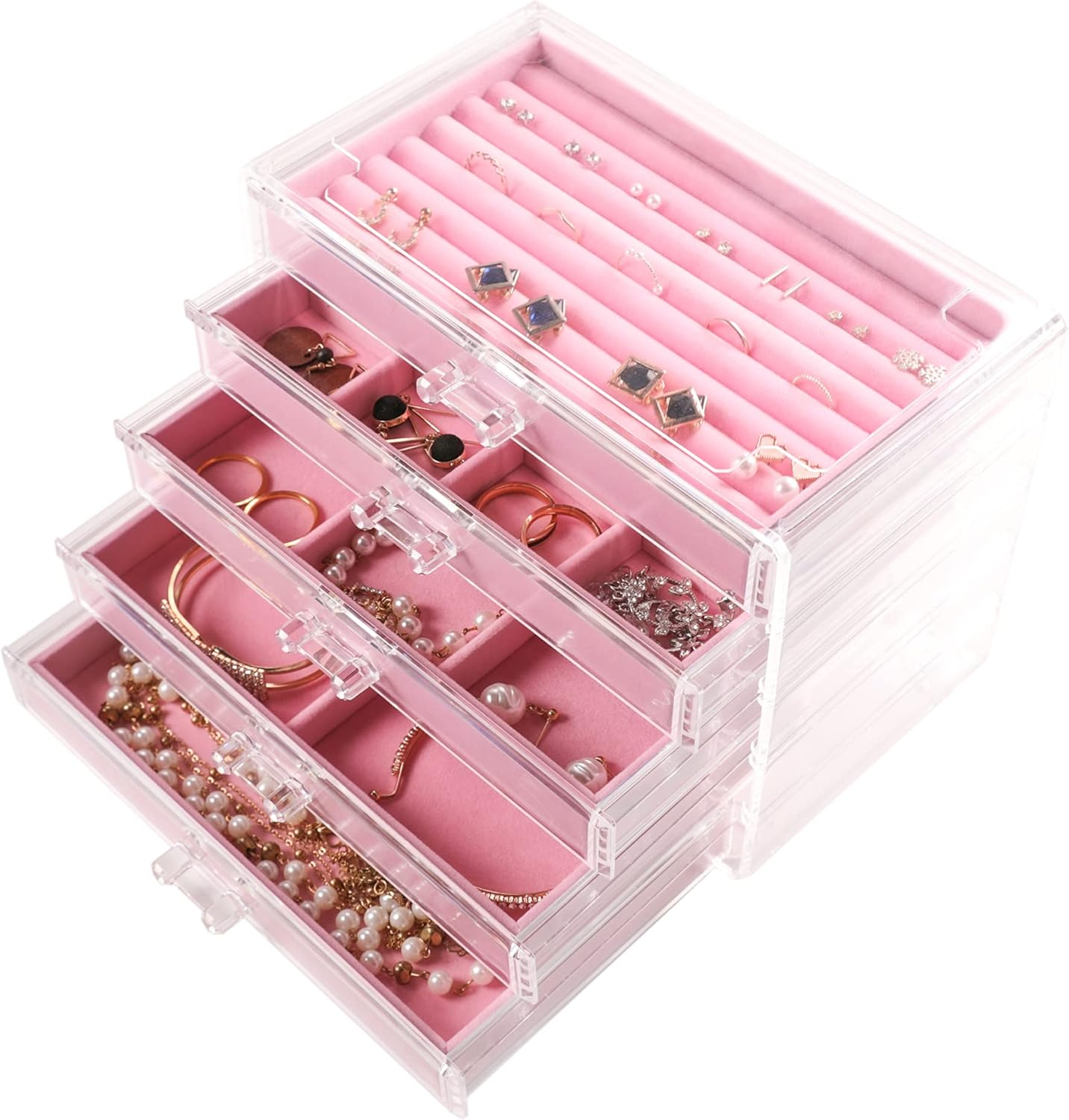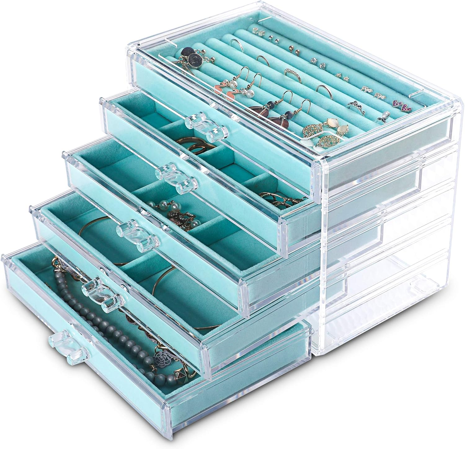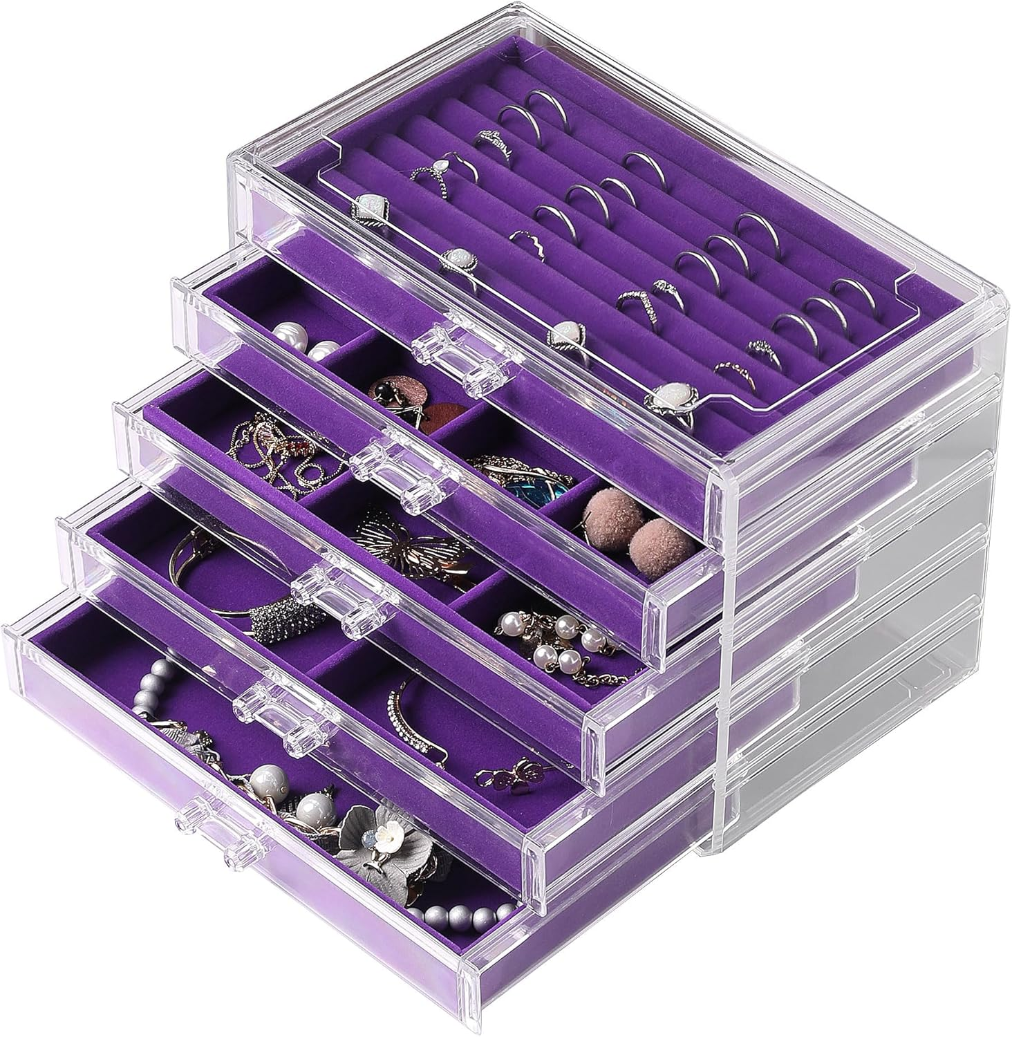 - High quality acrylic material : Design with 5 removable layer drawers, it's slide out smoothly, and the molded handles are very easy to grab and pull out. The transparent acrylic material on the outside make you to see the placement of the jewelry easy and take it convenient.