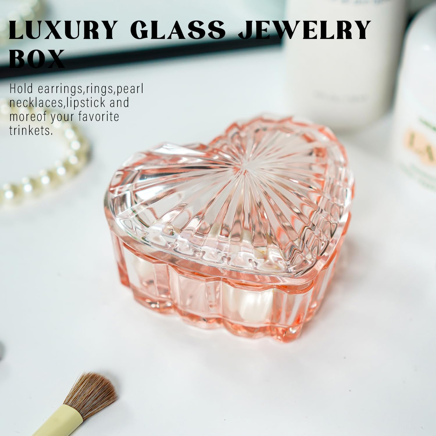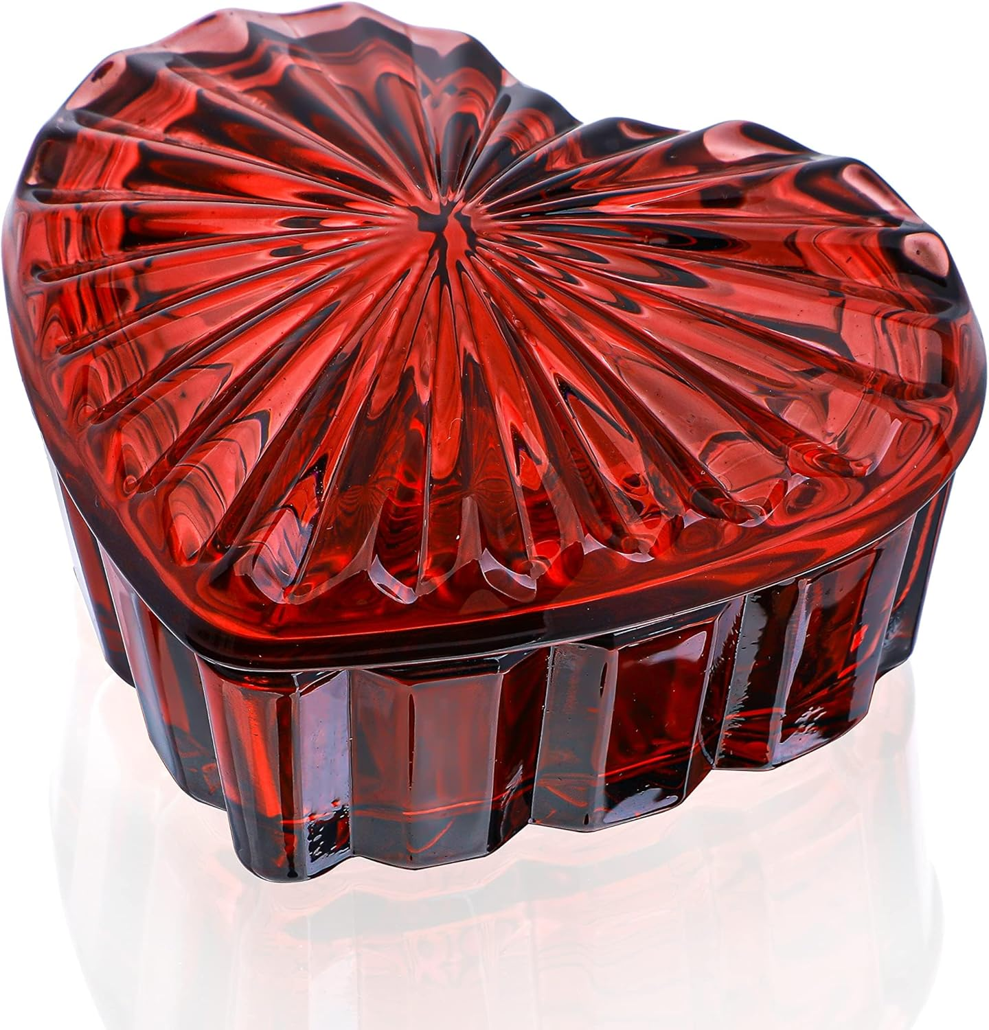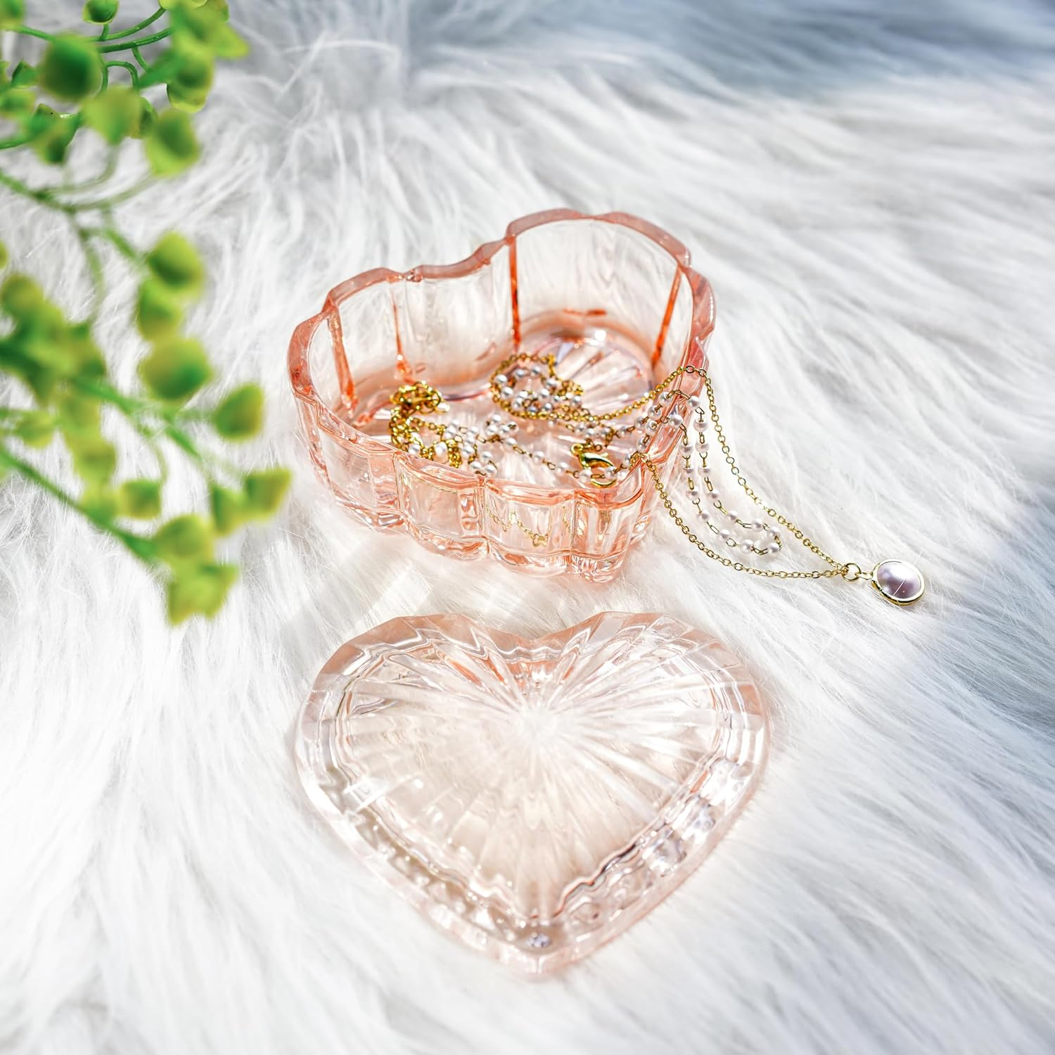 - Double-duty Glass Heart Shape Box: Use this glass jar with lid to store earrings, rings, bracelets, hair accessories, trinkets, flowers, and more on your vanity, bathroom, and bedroom. It can keep your jewelry away from dust and water, play the role of protection and decoration. It can also be used to store small candies, small snacks to enjoy a cozy holiday