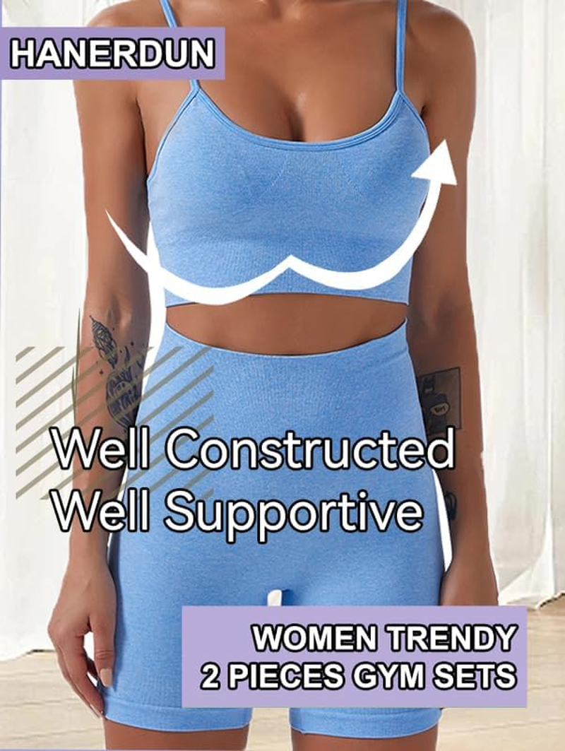 Hanerdun Women/ Girls Sports Bras set are made of high quality materials. Suitable for women and girls, seamless yoga pants squat proof, butt lift, perfect for gym,yoga, exercise, fitness, any type of workout, or daily use.