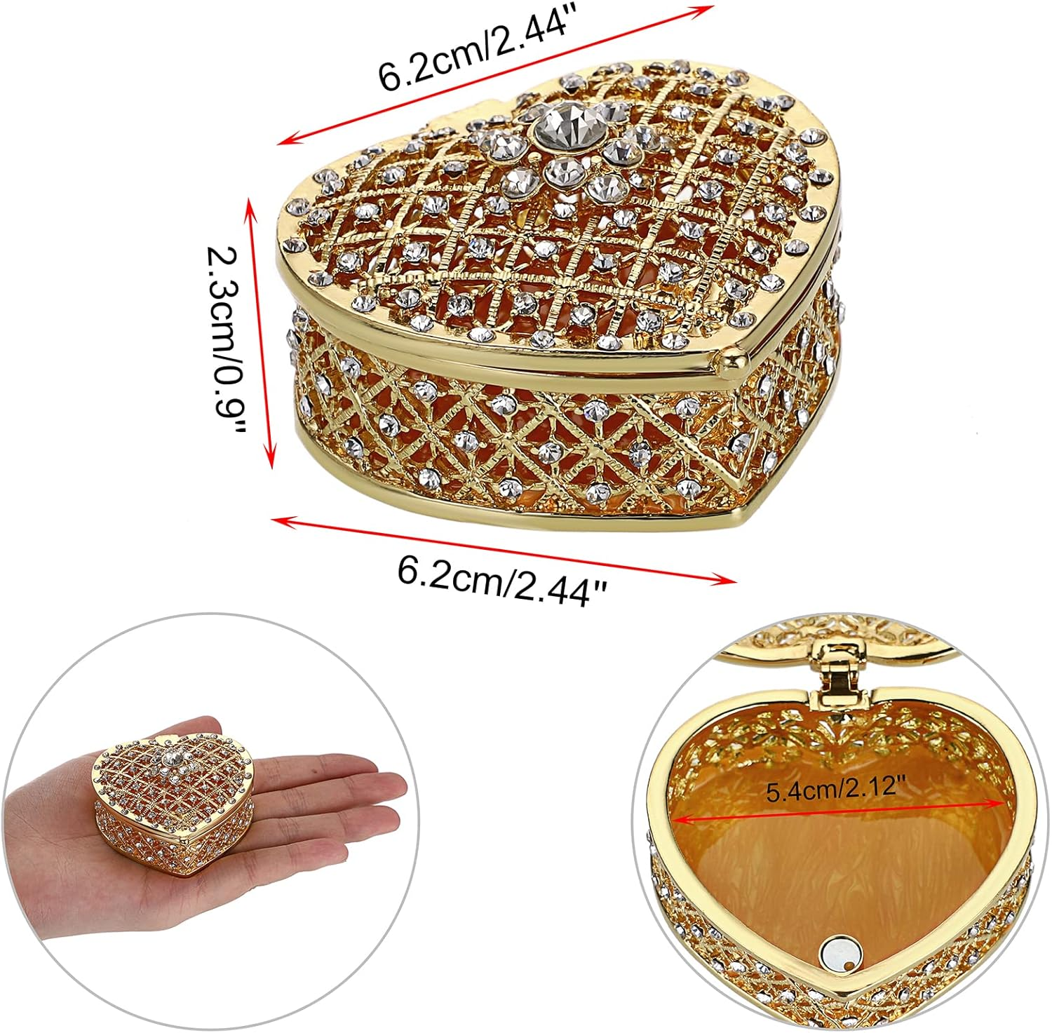 - Exquisite Heart Shape Crystal Jewelry Box - Hollow design makes your small trinkets breathable inside, and there's a little round outstanding part in front of the heart box for easy opening