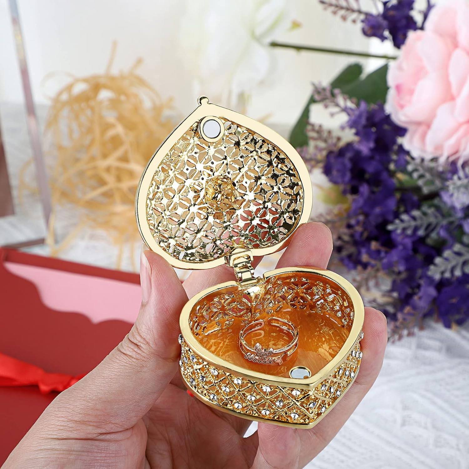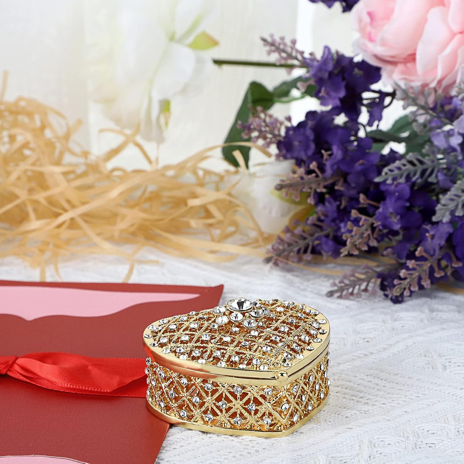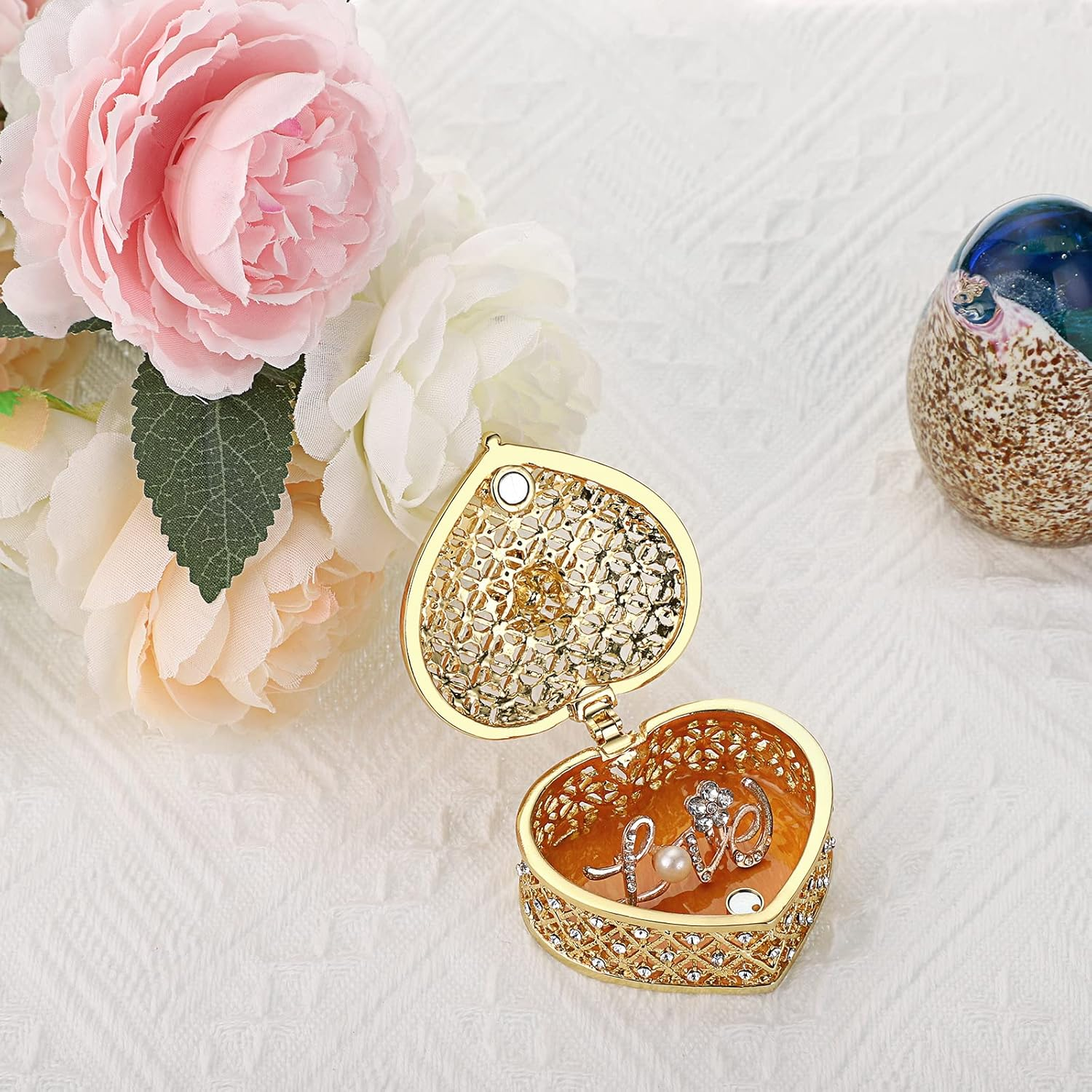 Heart Shape Jewelry Box Wedding Box Keepsake Box Ring Earring Small Trinket Storage Organizer Box for Girls Women Wedding Brithday Gift, Gold