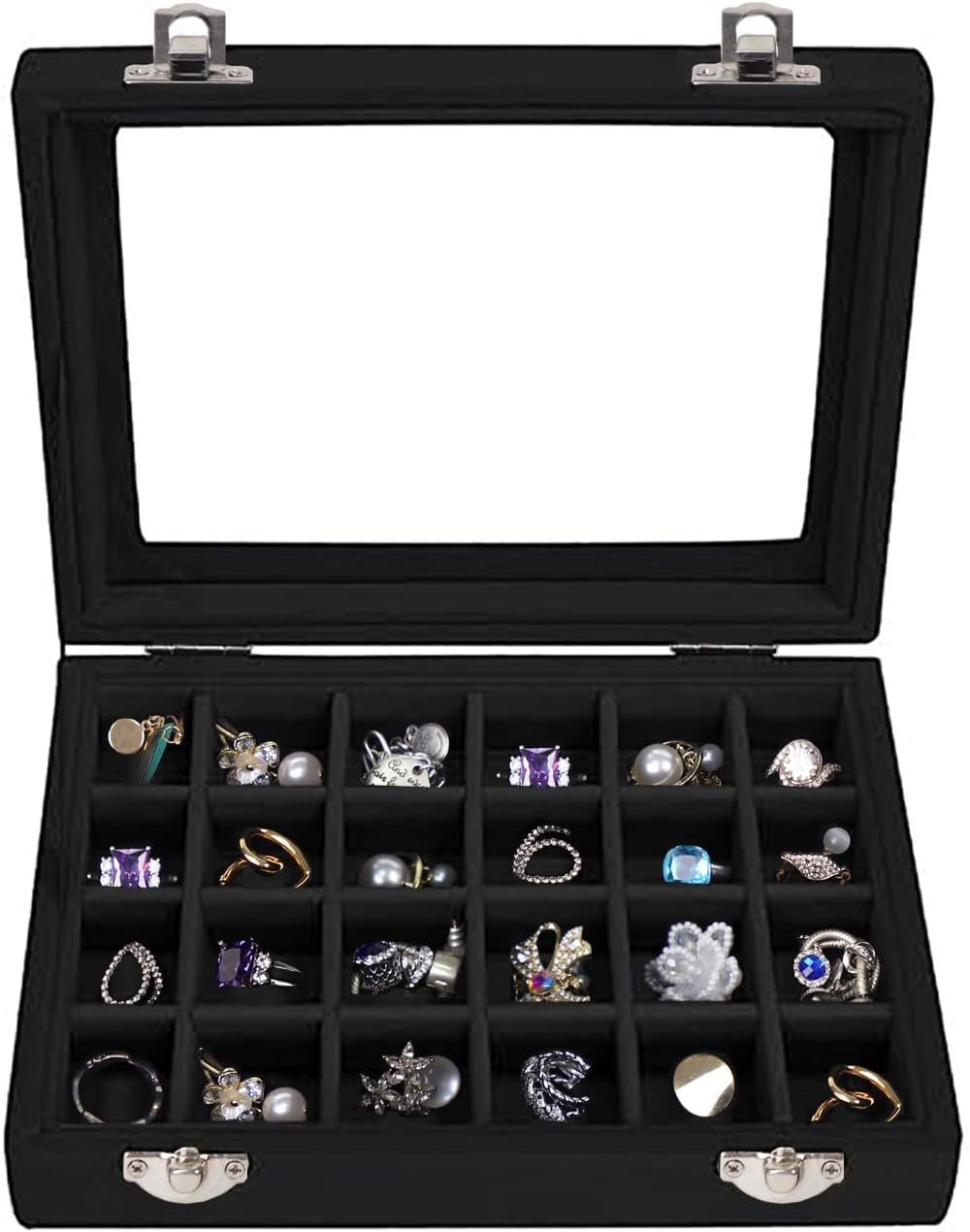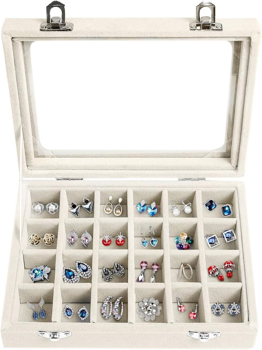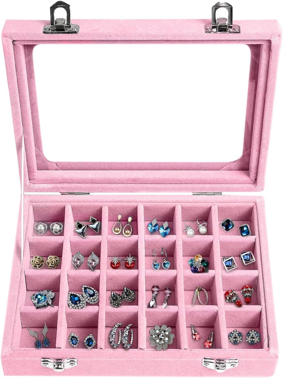Jewelry Box 24 Grid Velvet Earrings Holder Tray Detachable Earring Case Jewelry