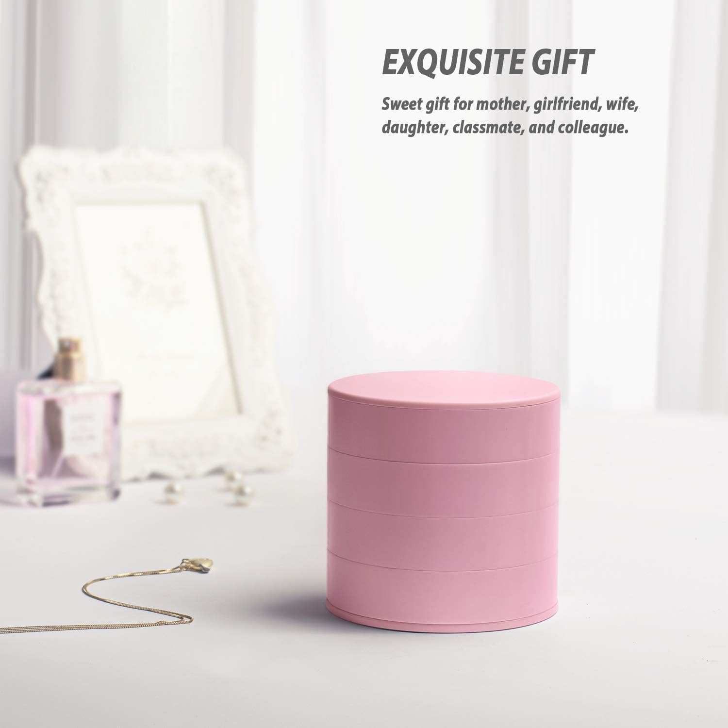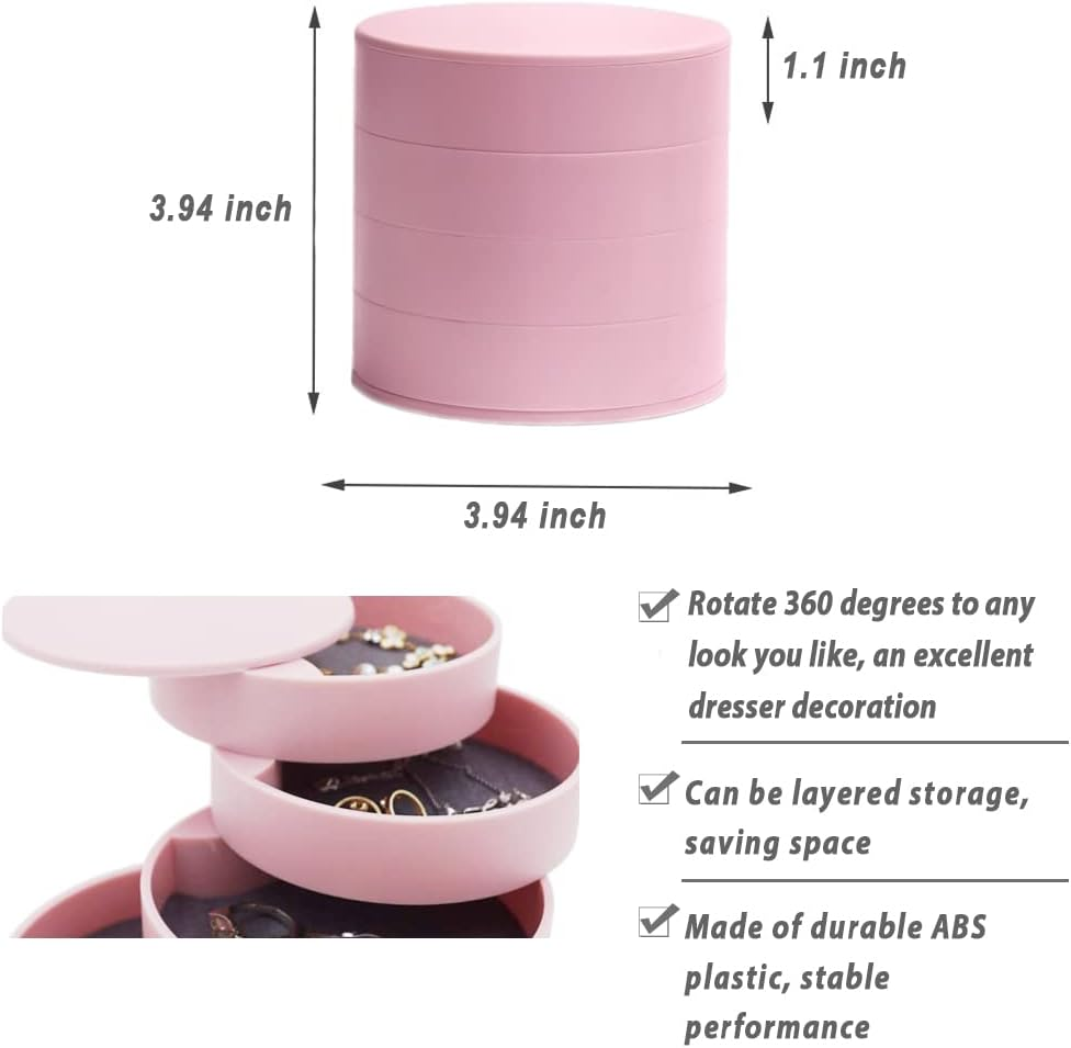 - 【ROTATABLE DESIGN】: 4-layer rotating jewelry tray design.Simple and modern style for storage and organization, 360 degreen freely rotating round jewelry box.