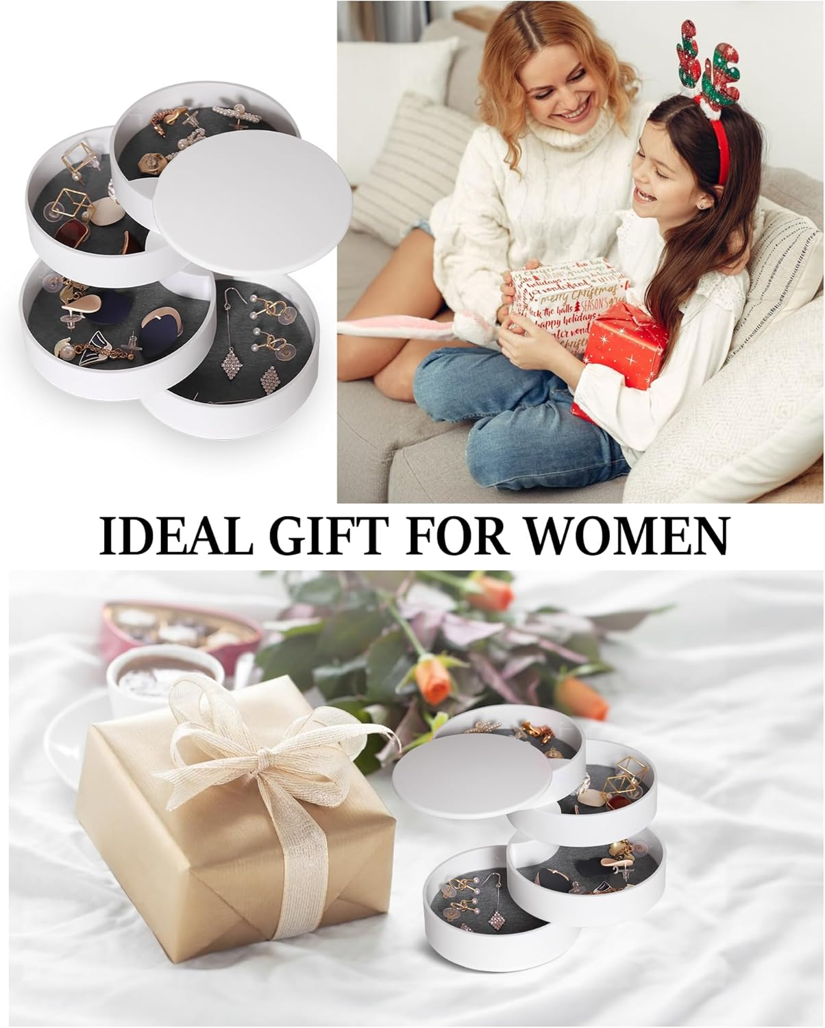 Jewelry Organizer, Small Jewelry Storage Box Earring Holder for Women, 5-Layer Rotating Travel Jewelry Tray Case with Lid for Bracelets Rings Bracelets, Gift for Women Teen Girls(White)