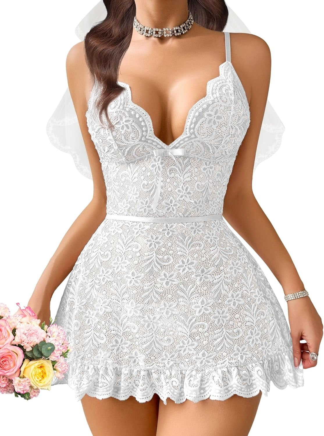Lace Babydoll Chemise Nightgown | Sexy Ruffle Hem Sleep Dress for Women – Zafora Store