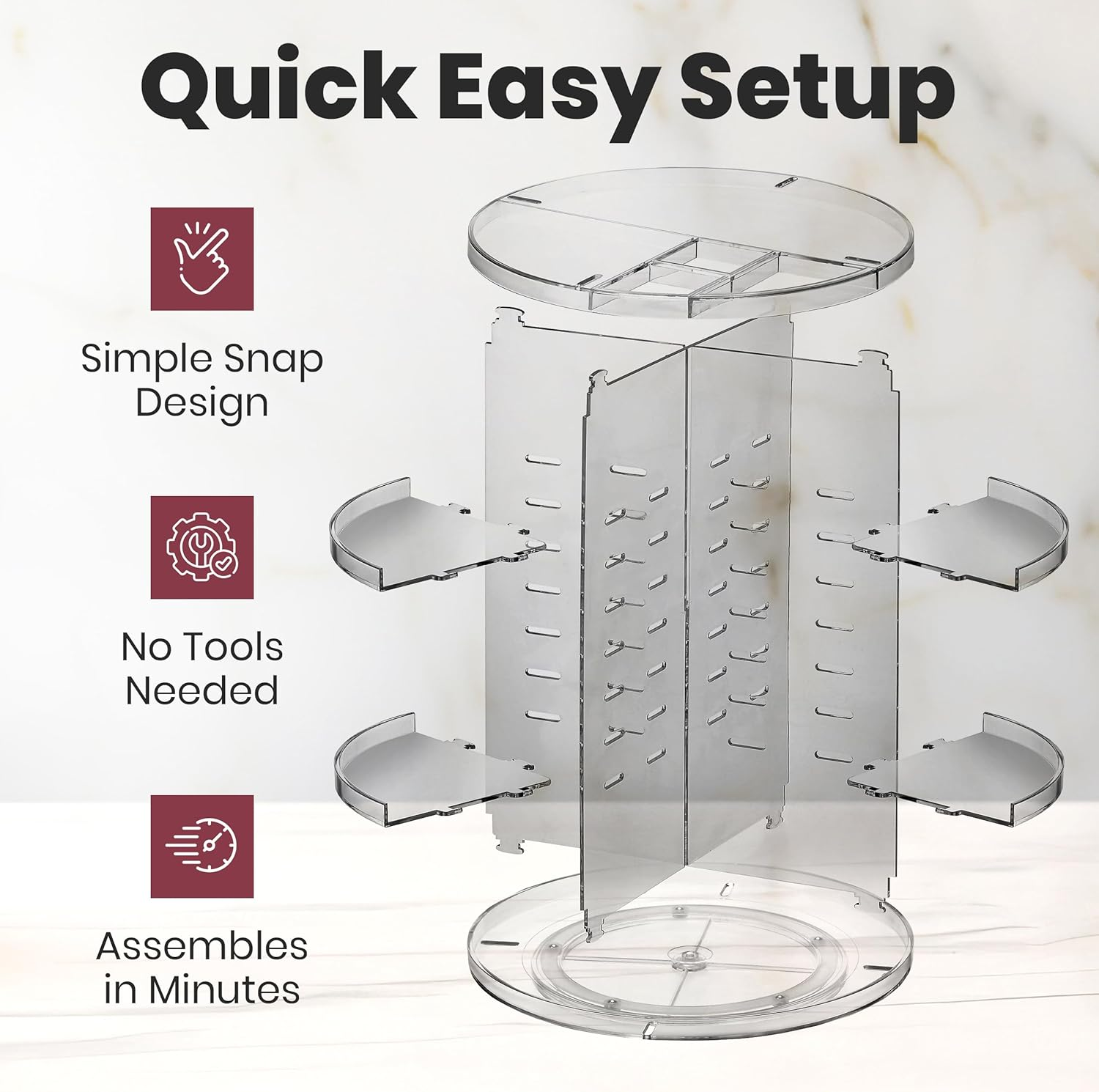 - LARGE STORAGE CAPACITY: This makeup spinning organizer offers generous storage space, allowing you to neatly organize a wide range of cosmetics and beauty products
