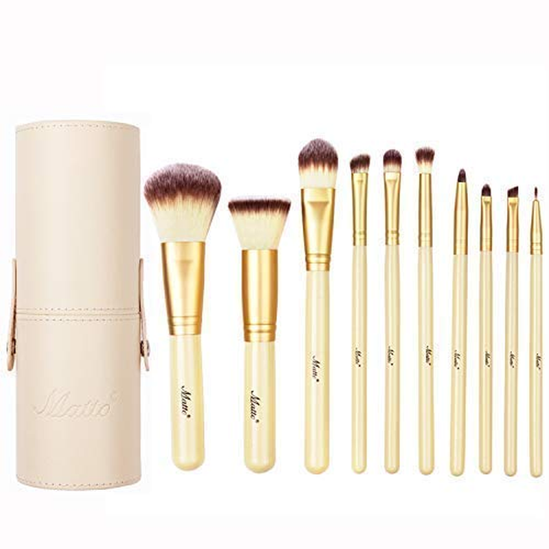Matto Makeup Brushes 10-Piece Golden Makeup Brush Set with Foundation Powder Mineral Eye Face Make up Brushes Holder