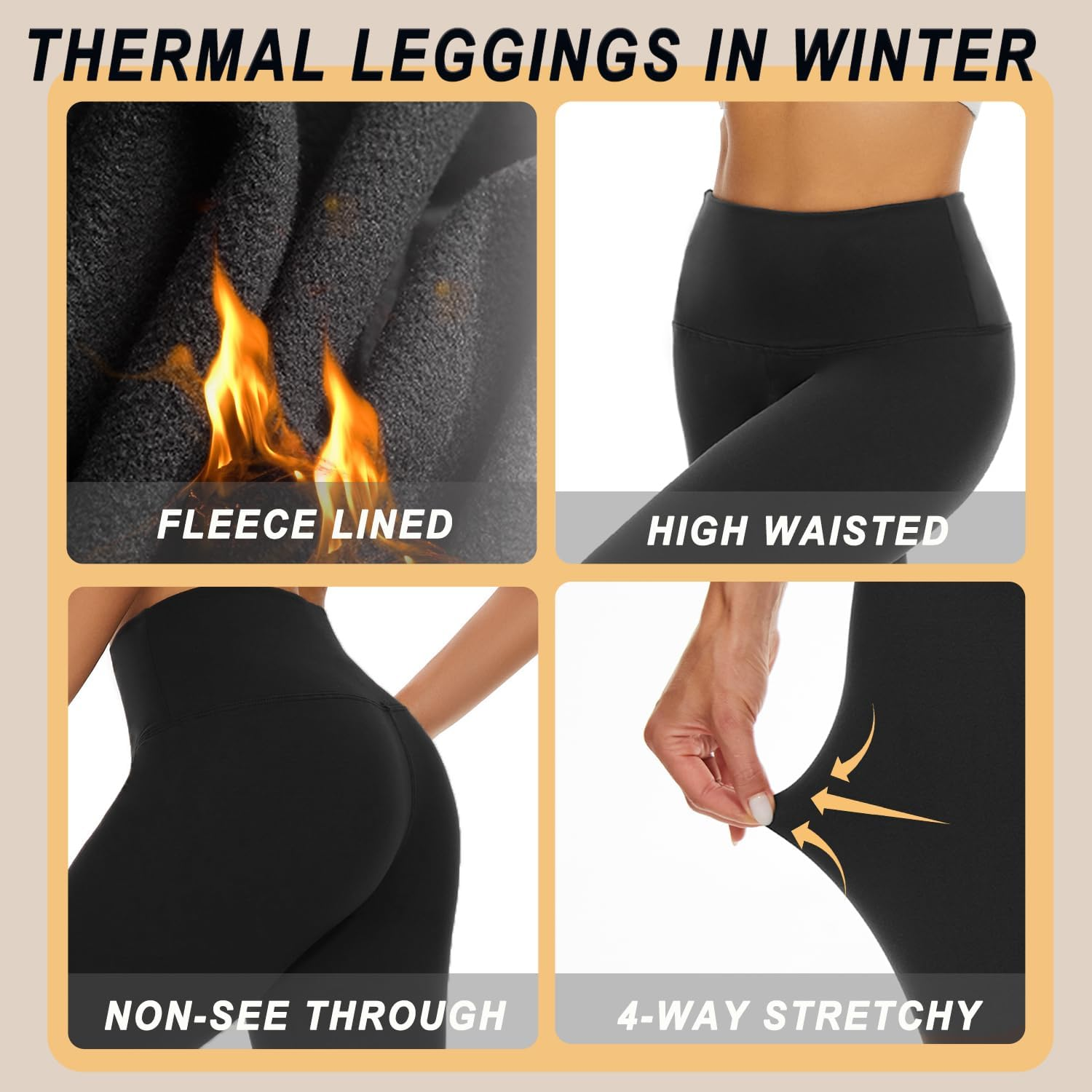 - 【Fleece Lined&Thermal】With soft fleece interior, our thermal leggings for winter will fit you like a second layer of skin and offer you both Comfort & Warmth when temperature drops.Whether indoors or outdoors in the cold, this pair of legging can be worn to keep warm but not bulky, making it the best piece for winter.