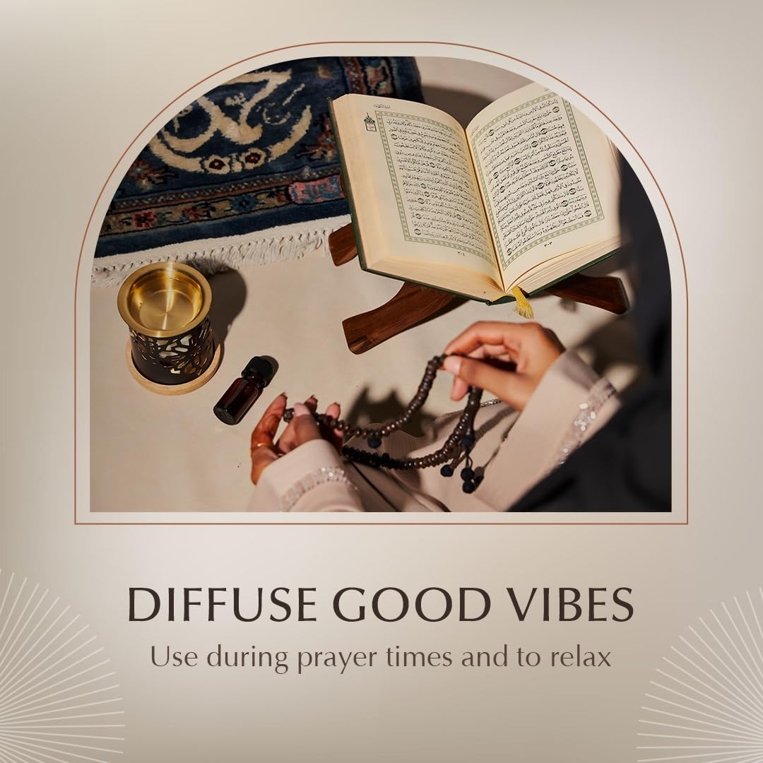 - HOW TO USE: Put the black metal burner on the wooden coaster and place the brass bowl above. Add 8-10 drops of the oud oil to water in the bowl. Light a tea light candle and place it below the brass bowl. You can add more oil to your diffuser for a stronger scent or if burning in a very large area