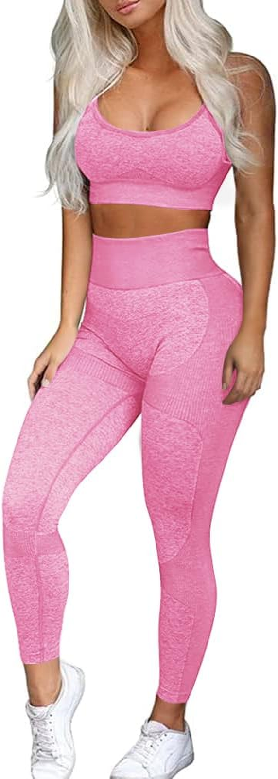 Women’s Workout Sets 2 Piece Seamless Yoga Leggings Sports Bra Tracksuits Activewear Matching Set