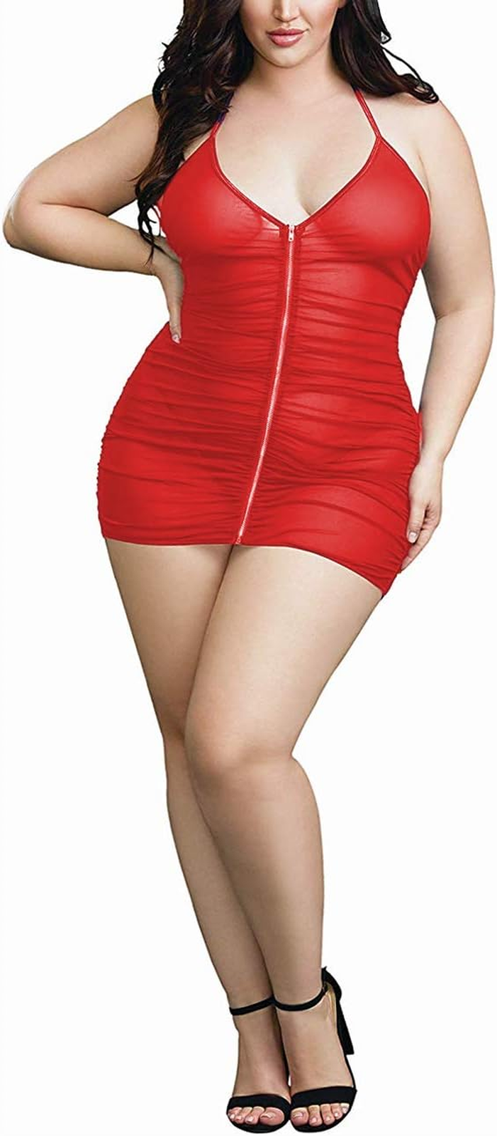 Turn up the heat and embrace your curves with this Plus Size Sheer Mesh Babydoll Chemise. Designed with stretch mesh fabric, seductive ruching, and a daring front zipper, this lingerie is crafted to make you feel confident, curvy, and irresistibly sexy.