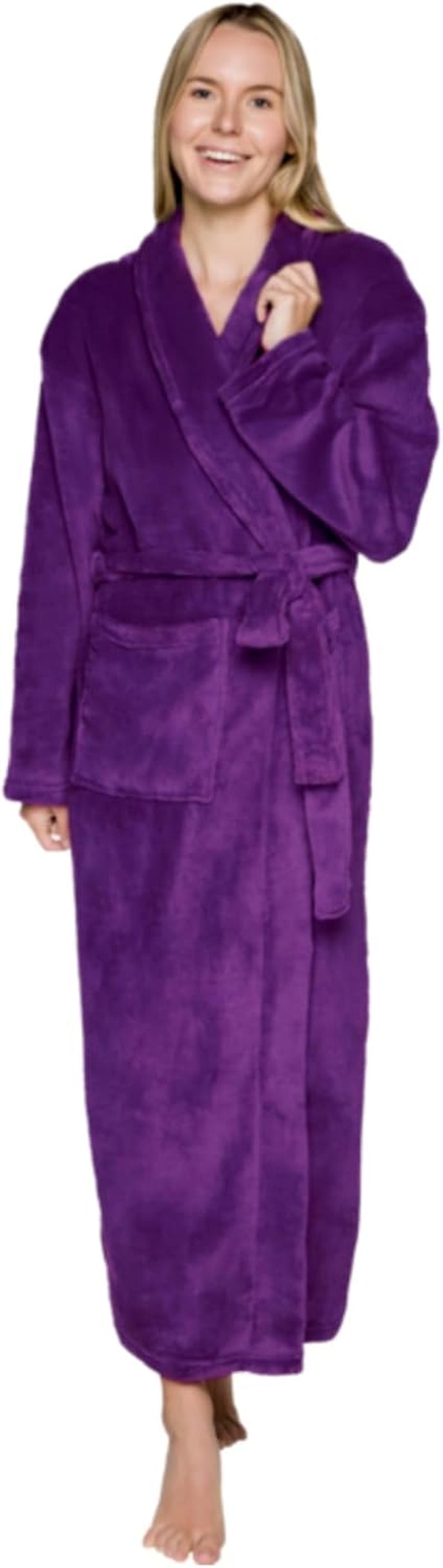 Women’s Full-Length Plush Fleece Bath Robe with Shawl Collar & Pockets