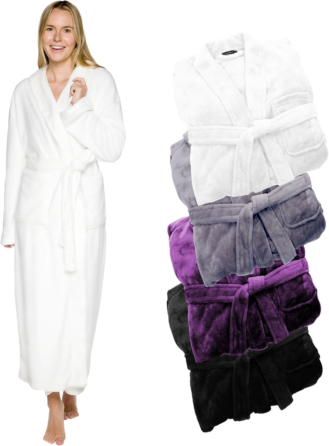 Women’s Full-Length Plush Fleece Bath Robe with Shawl Collar & Pockets