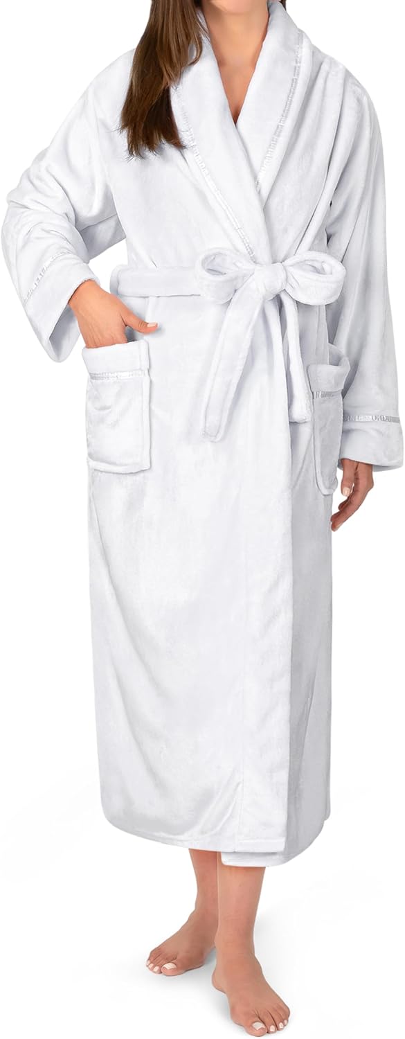 Women’s Plush Fleece Hooded Long Bath Robe – Soft Cozy Spa Housecoat with Pockets