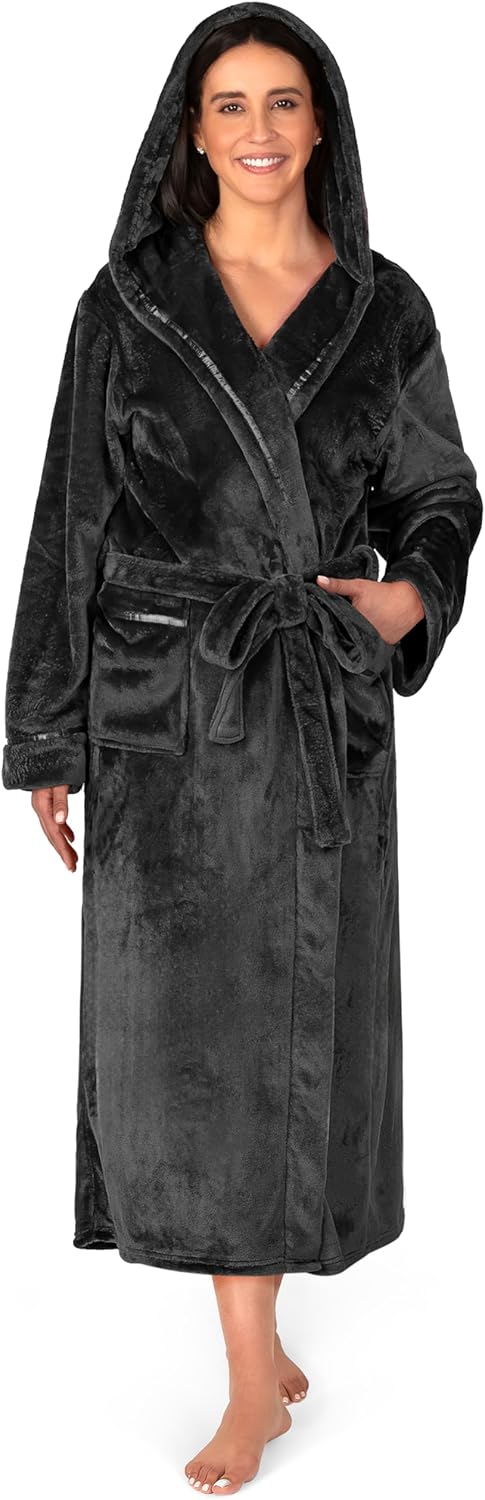 Women’s Plush Fleece Hooded Long Bath Robe – Soft Cozy Spa Housecoat with Pockets