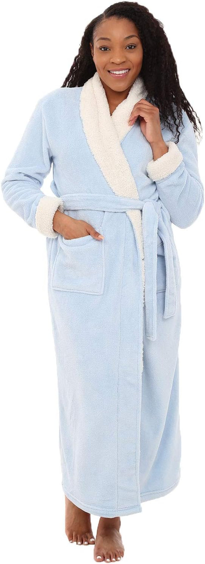 Women’s Plush Sherpa Long Bath Robe – Cozy Warm Lounge Housecoat with Pockets