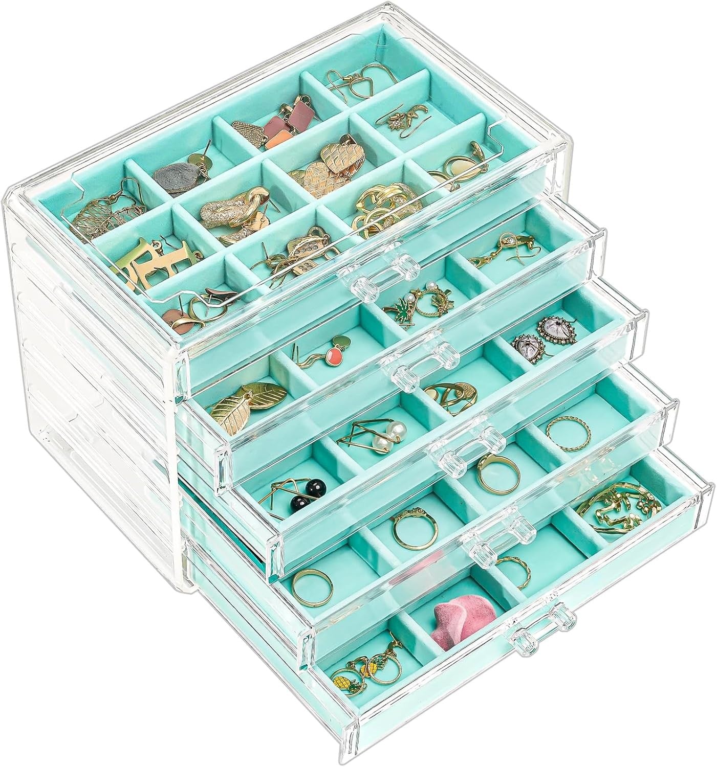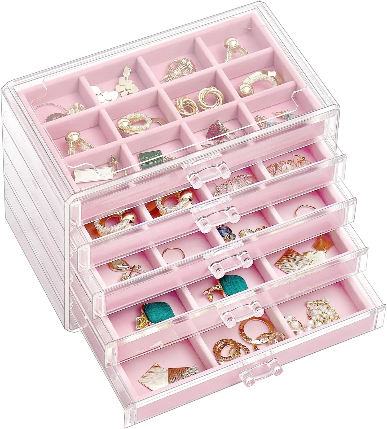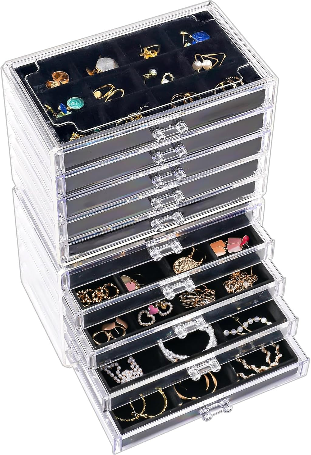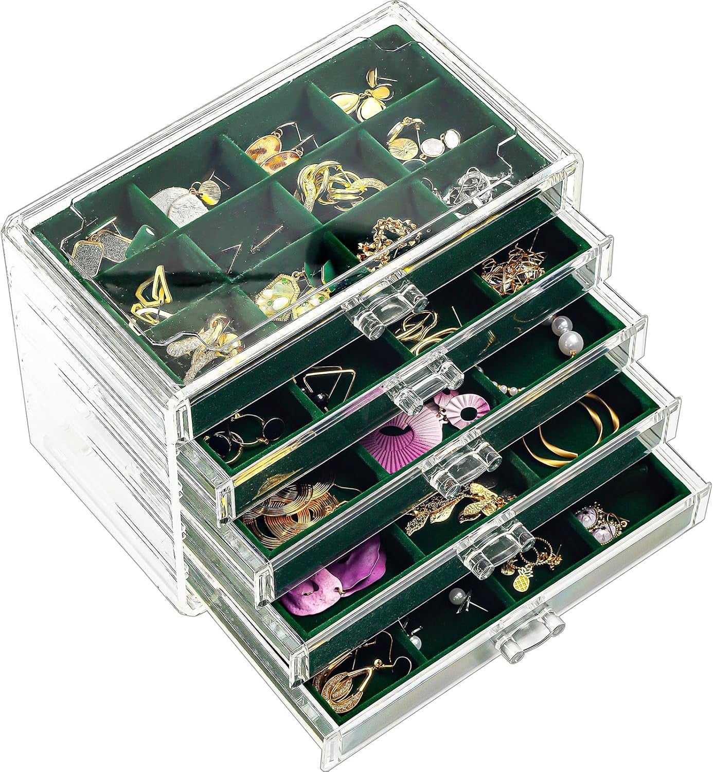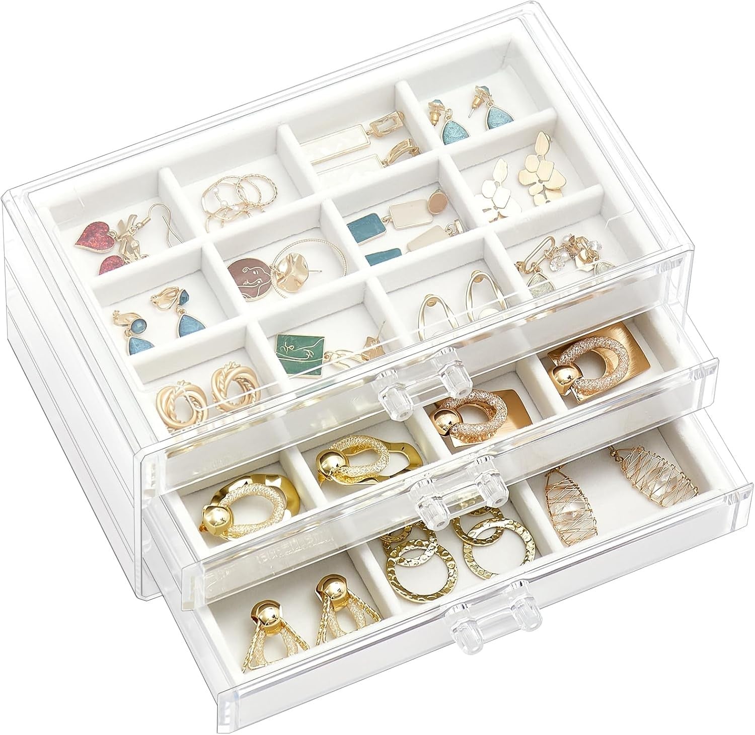 Procase Earring Holder Organizer Jewelry Box with 3 Drawers, Acrylic Clear Earri