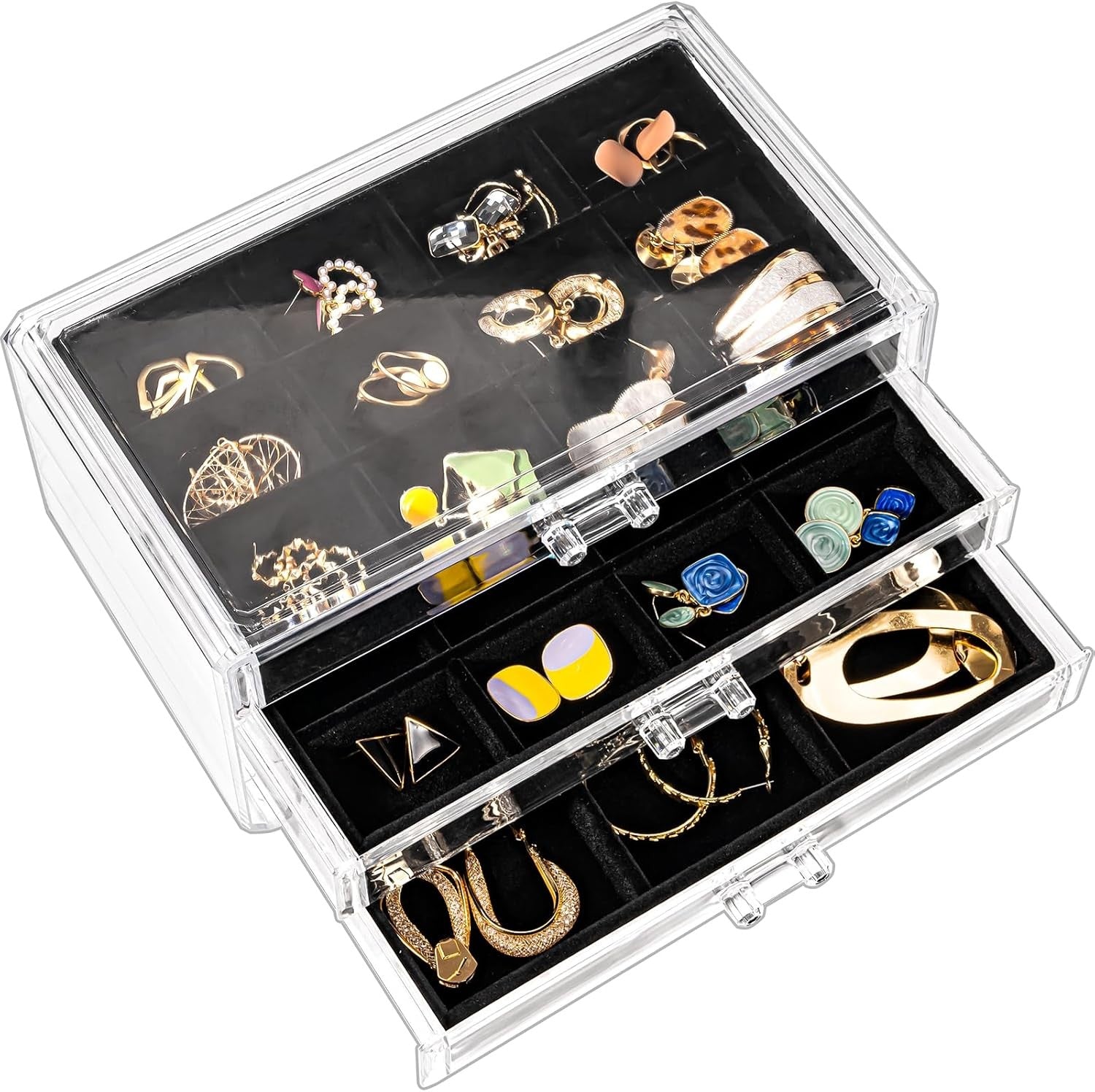 - Extra-large Capacity - Includes 3 customizable velvet trays that can be adjusted to store jewelry of various sizes, providing a space for rings, small items of jewelry, as well as larger earrings, no more losing earrings or get them mixed up with other earrings and rings