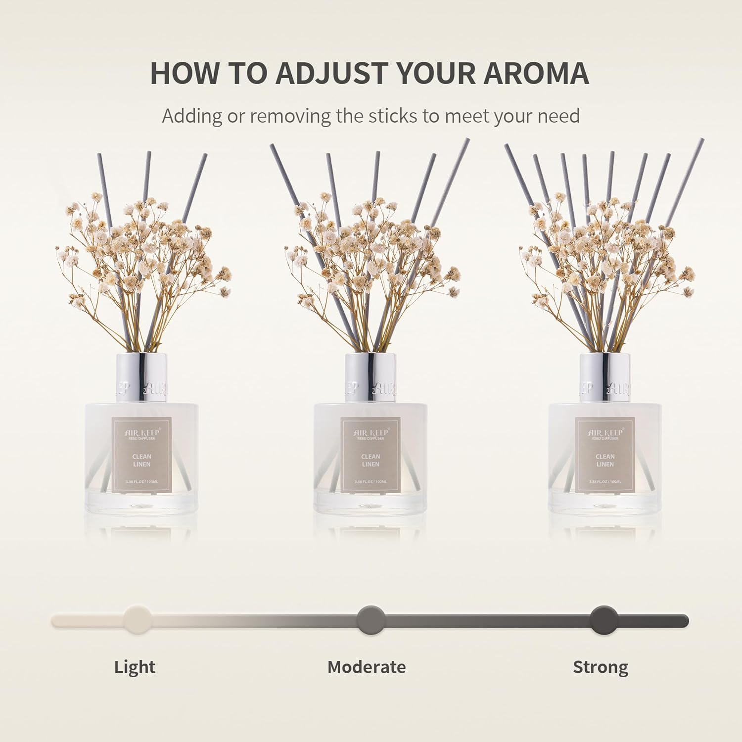 - 【Gift & Decoration Functions】:Fragrances Reed Diffuser implies wonderful and happy life.Airkeep reed diffuser set with nice decor makes an excellent gift for friends, colleagues, family members and especially yourself