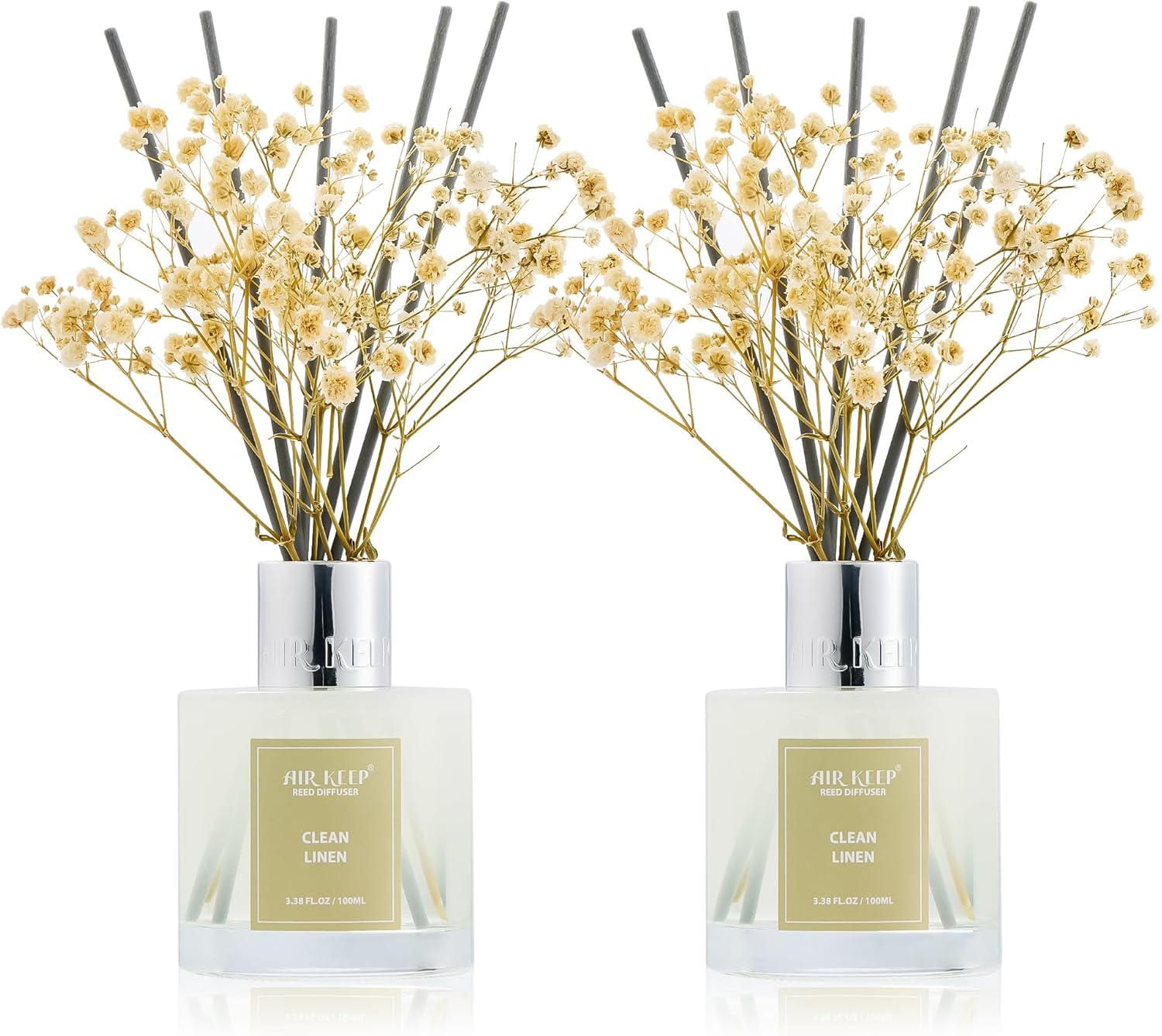 Reed Diffuser 3.38 Oz (100Ml) 2Pk, Clean Linen Scented Reed Diffuser Set,Reed Diffuser & Oil Diffuser Sticks, Aromatherapy, Reed Diffuser Set Box 2-Clean Linen