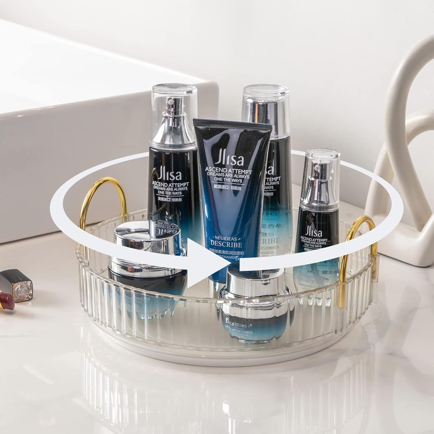 Rotating Makeup Organizer for Vanity, High-Capacity Skincare Perfume Storage, Ba