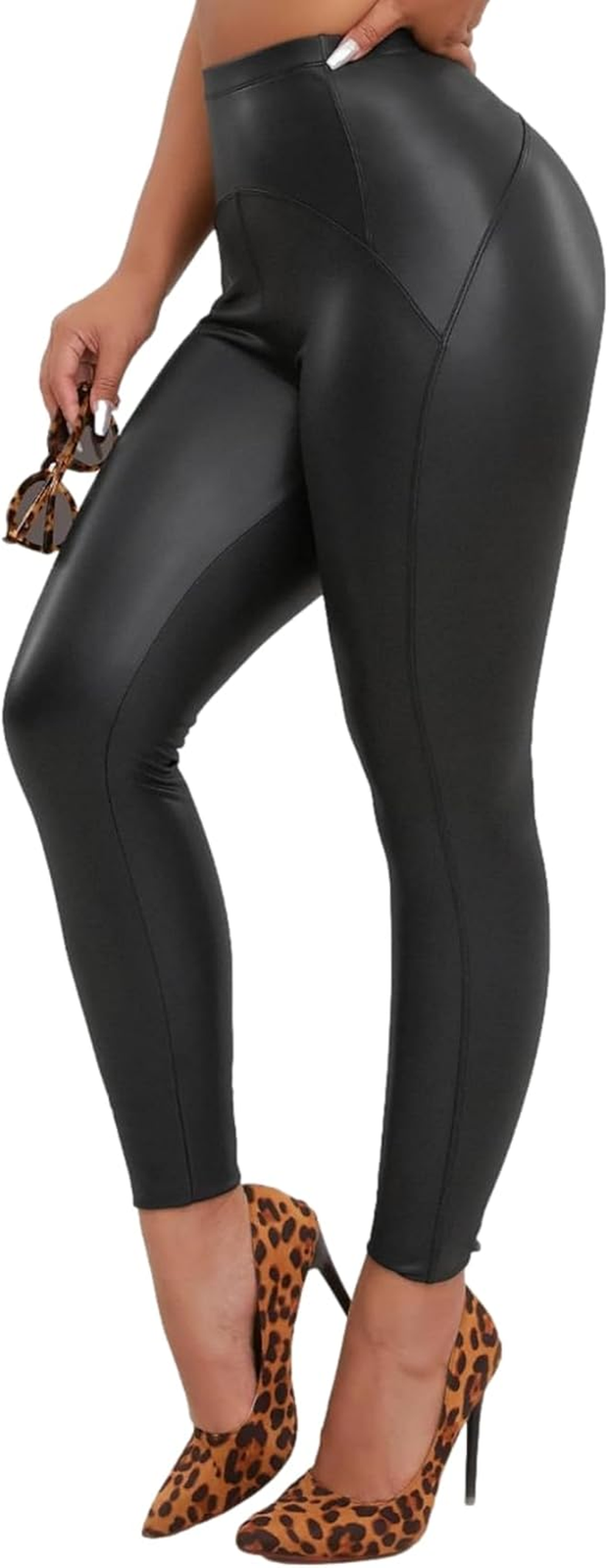 SEASUM Faux Leather Leggings for Women Stretchy High Waisted Butt Lifting Black