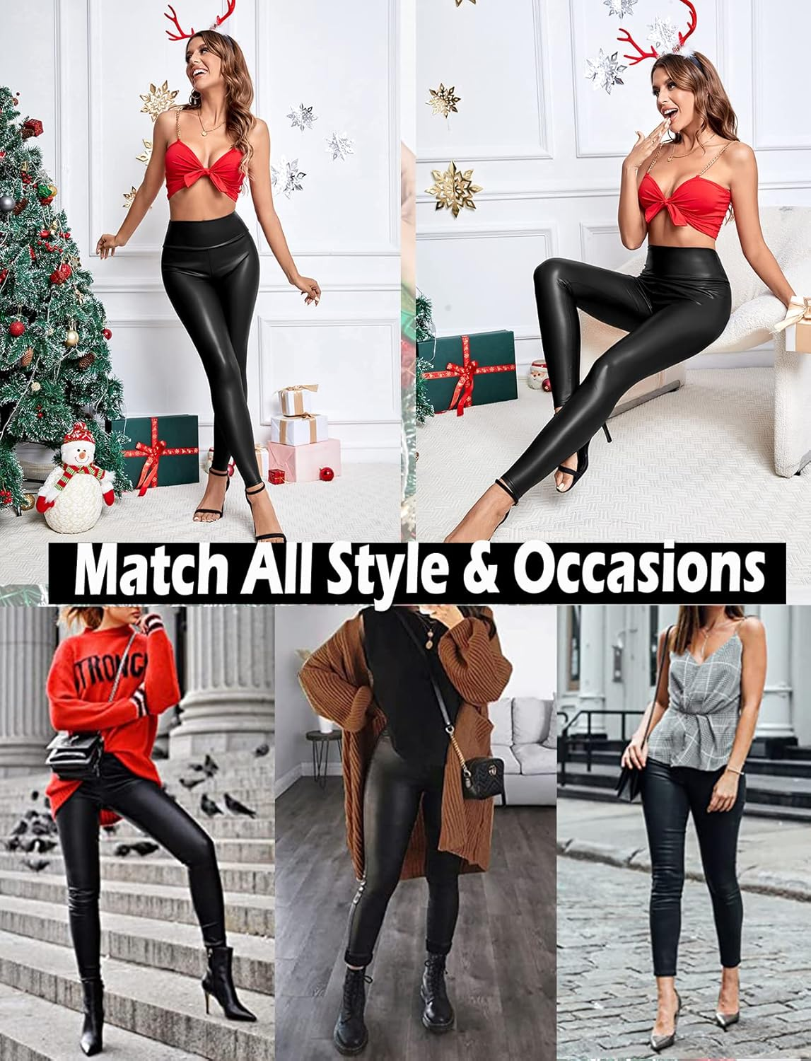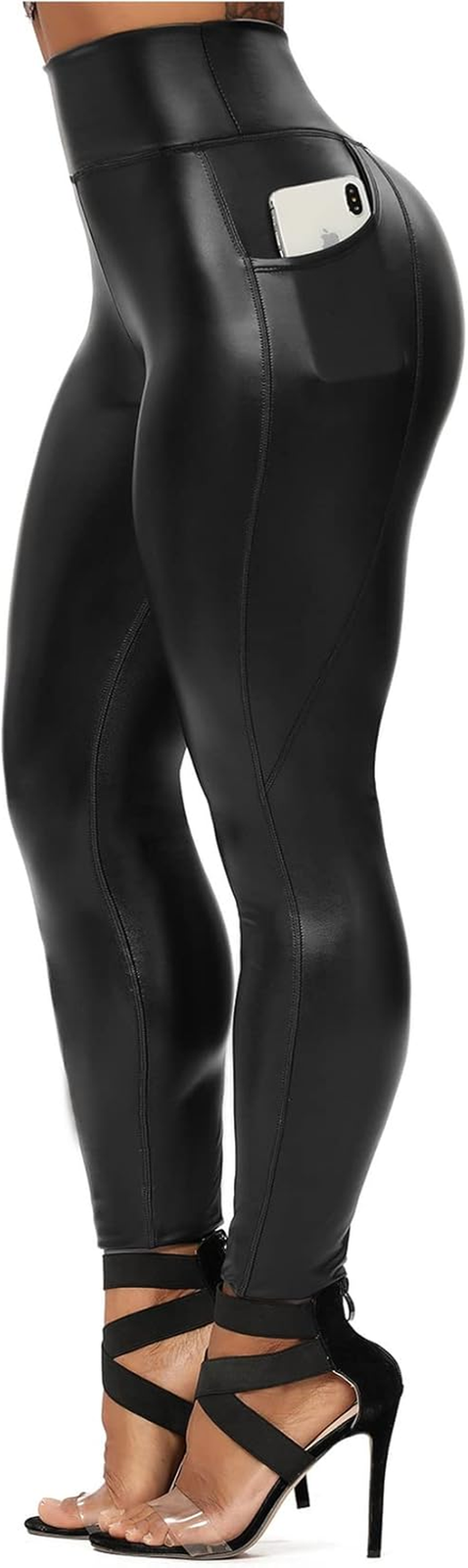 SEASUM Women'S Faux Leather Leggings Pants PU Elastic Shaping Hip Push up Black Sexy Stretchy High Waisted Tights