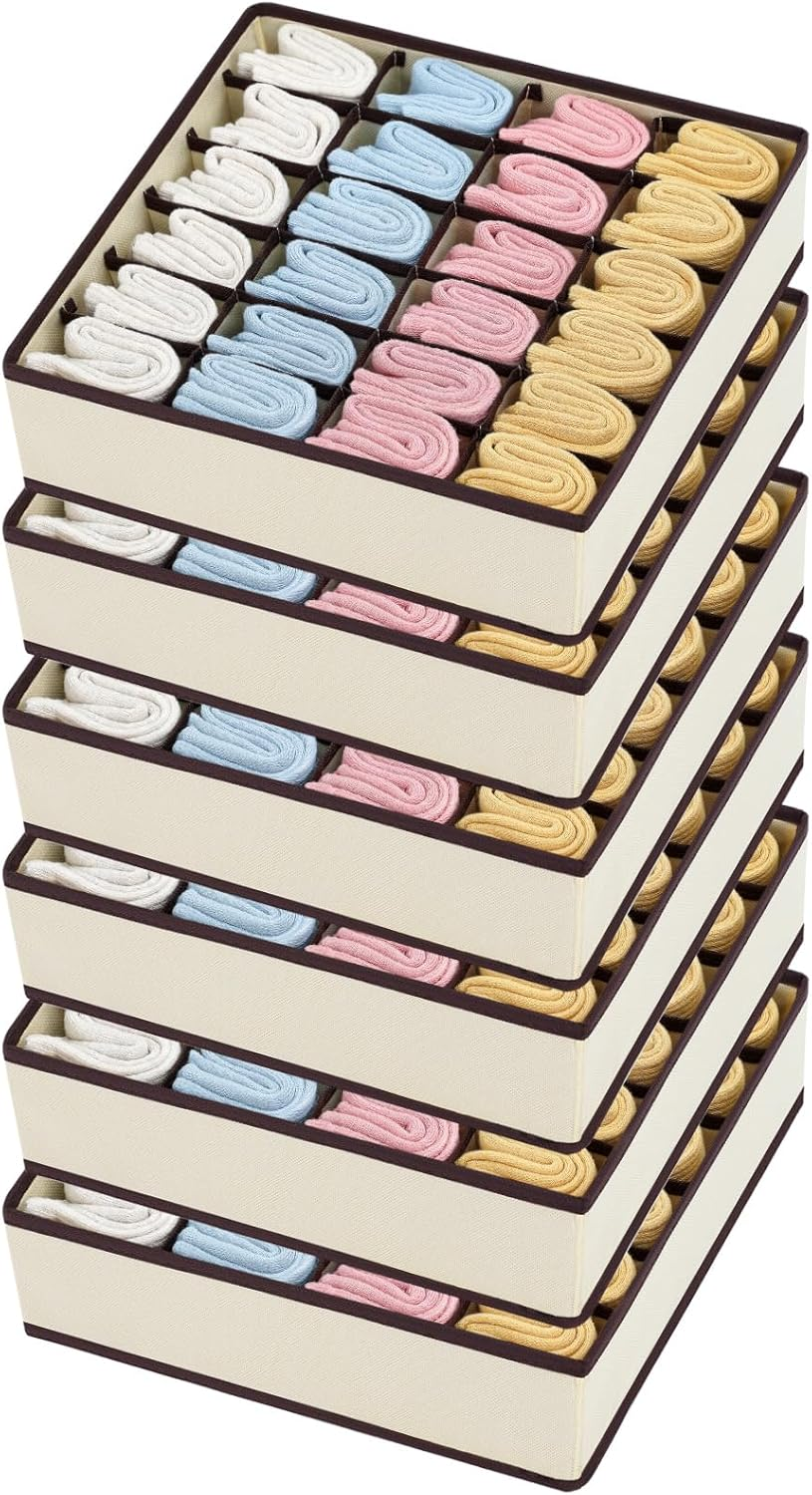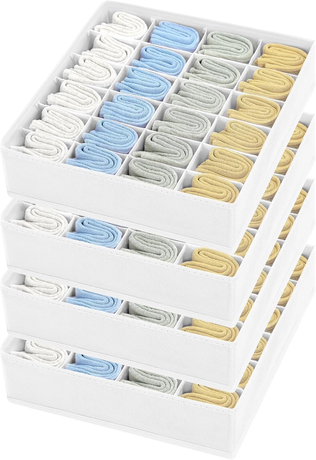 - 【Exquisite and Practicl】The 16-cell socks organizer for drawer is 11.8*11.8*3.5". With simple color and pattern, underwear drawer organizer fit well with your home. And the open design makes you find needed items easily.