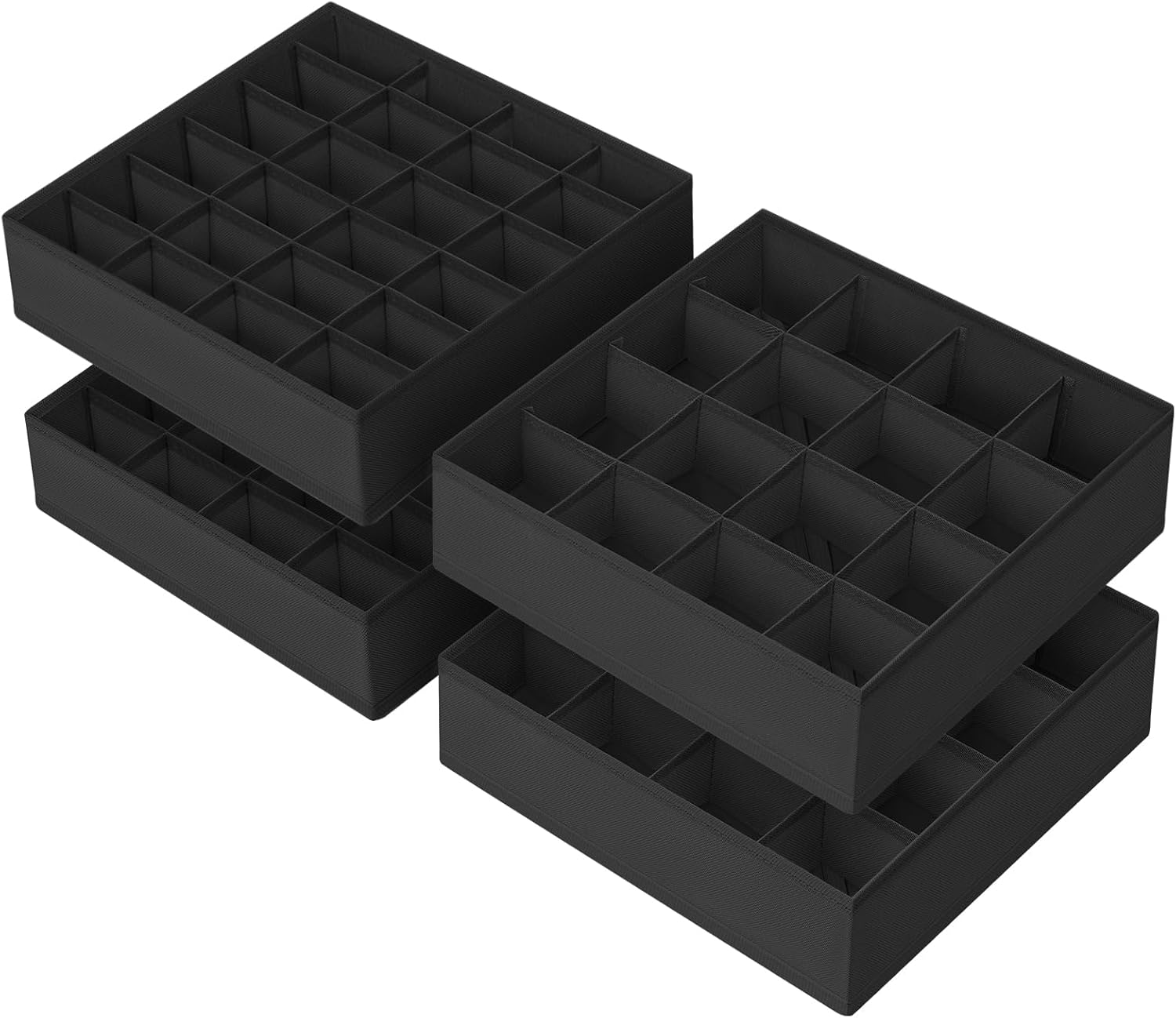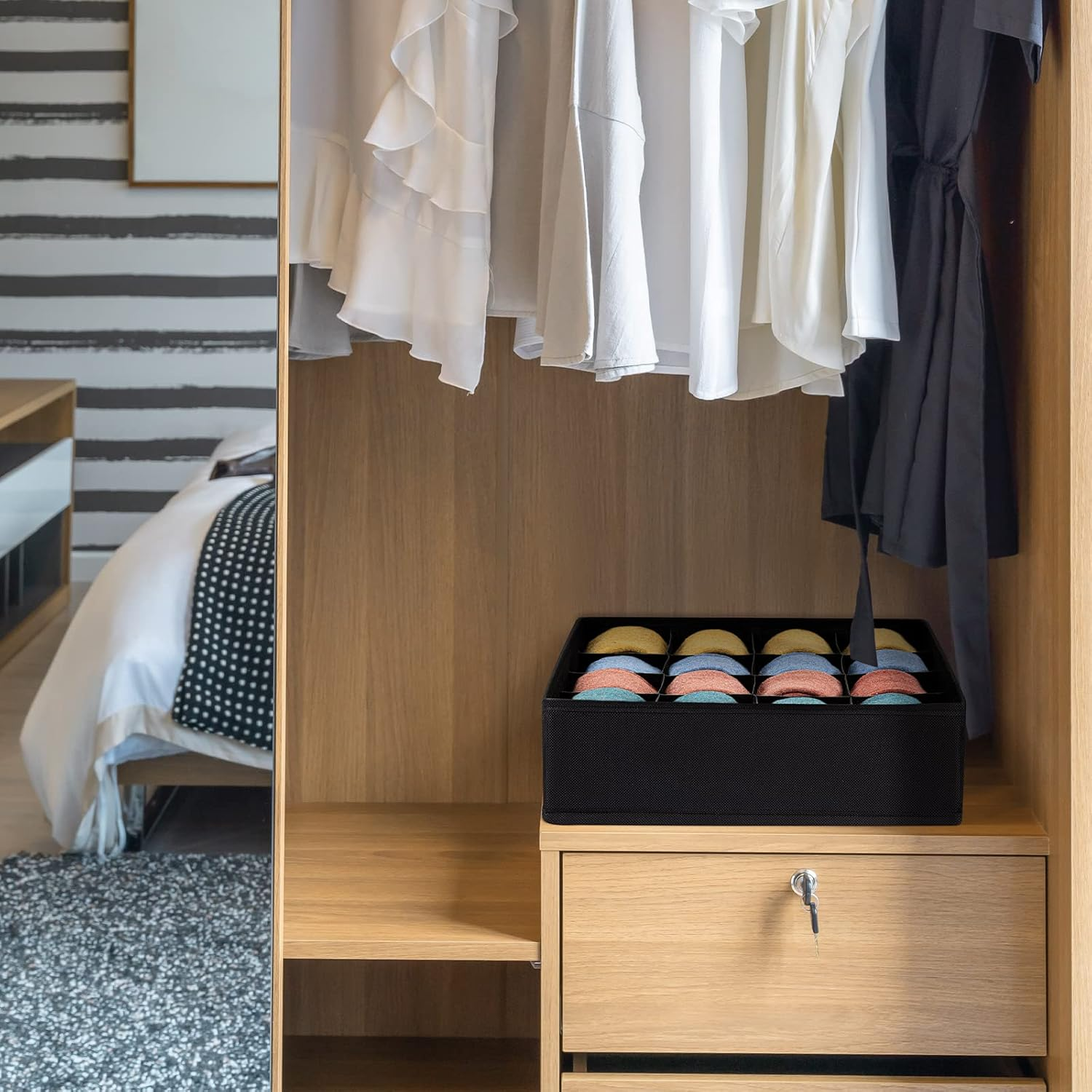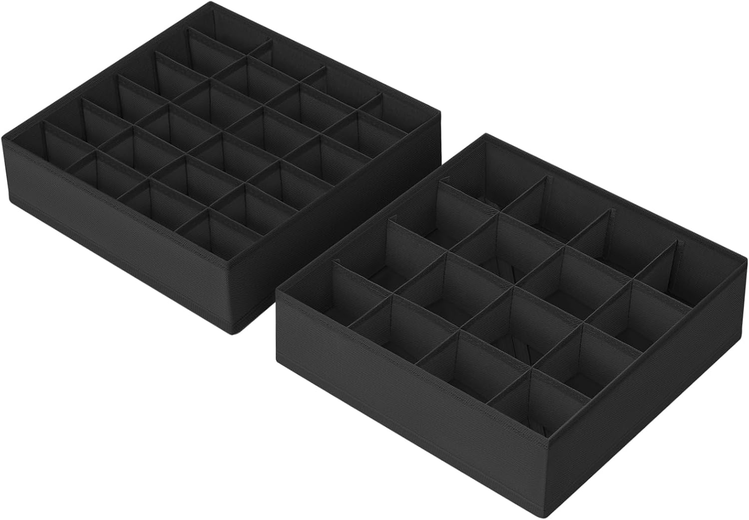 Sock Drawer Organizer Divider, 16-Cell Underwear Organizers and Storage Fabric Drawer Organizer for Socks, Lingerie, Handkerchiefs, Ties Black, 2 Packs