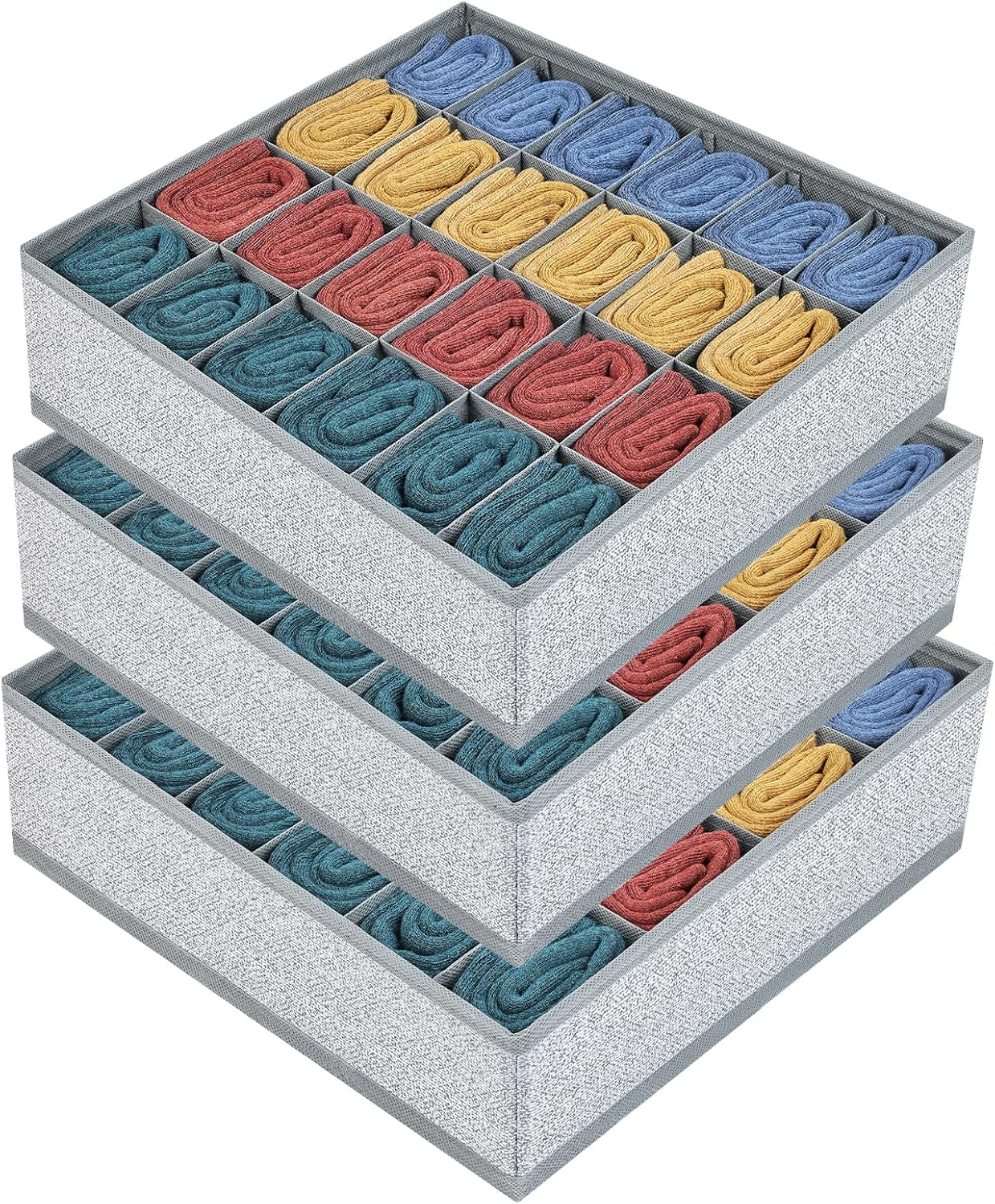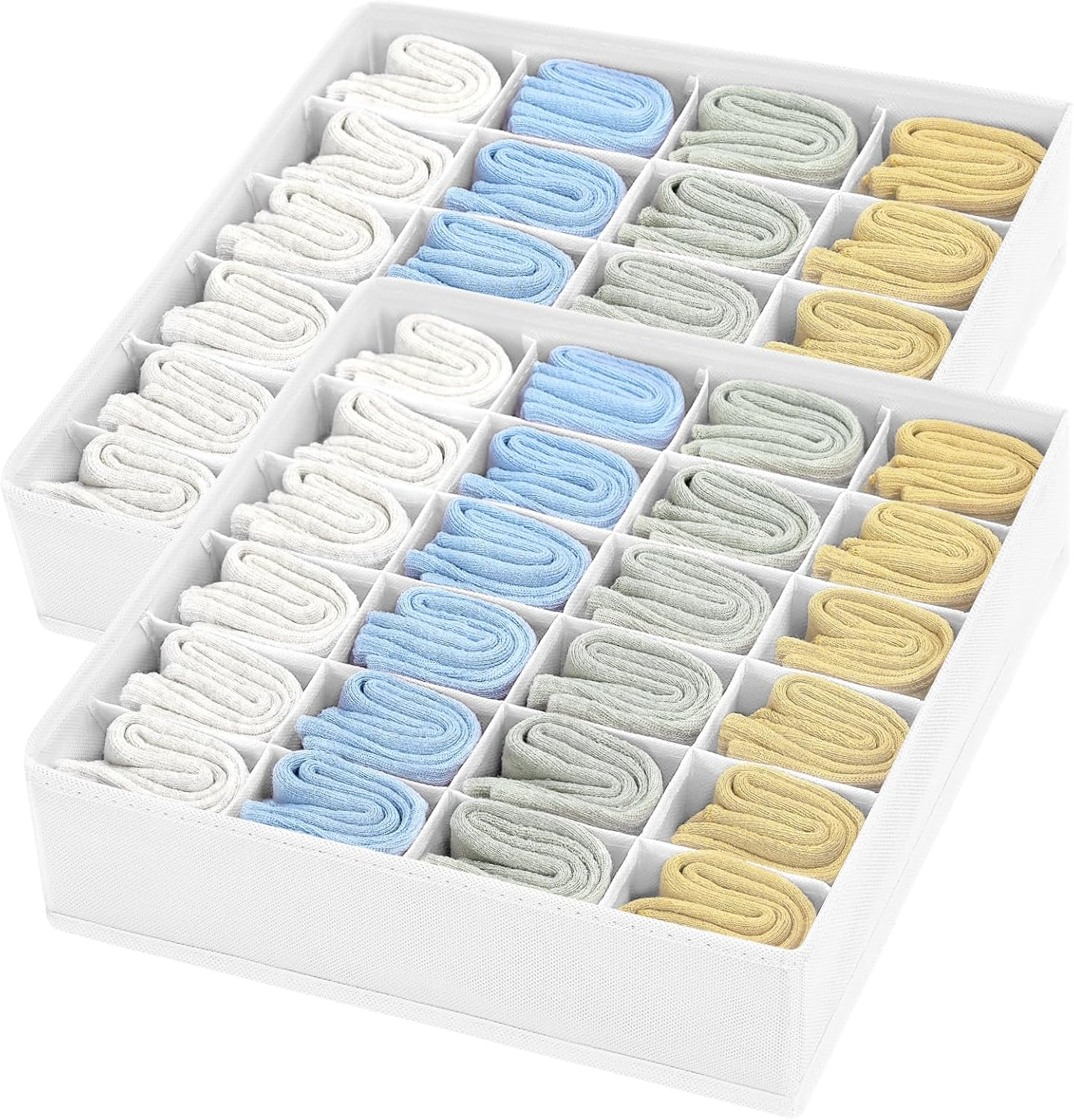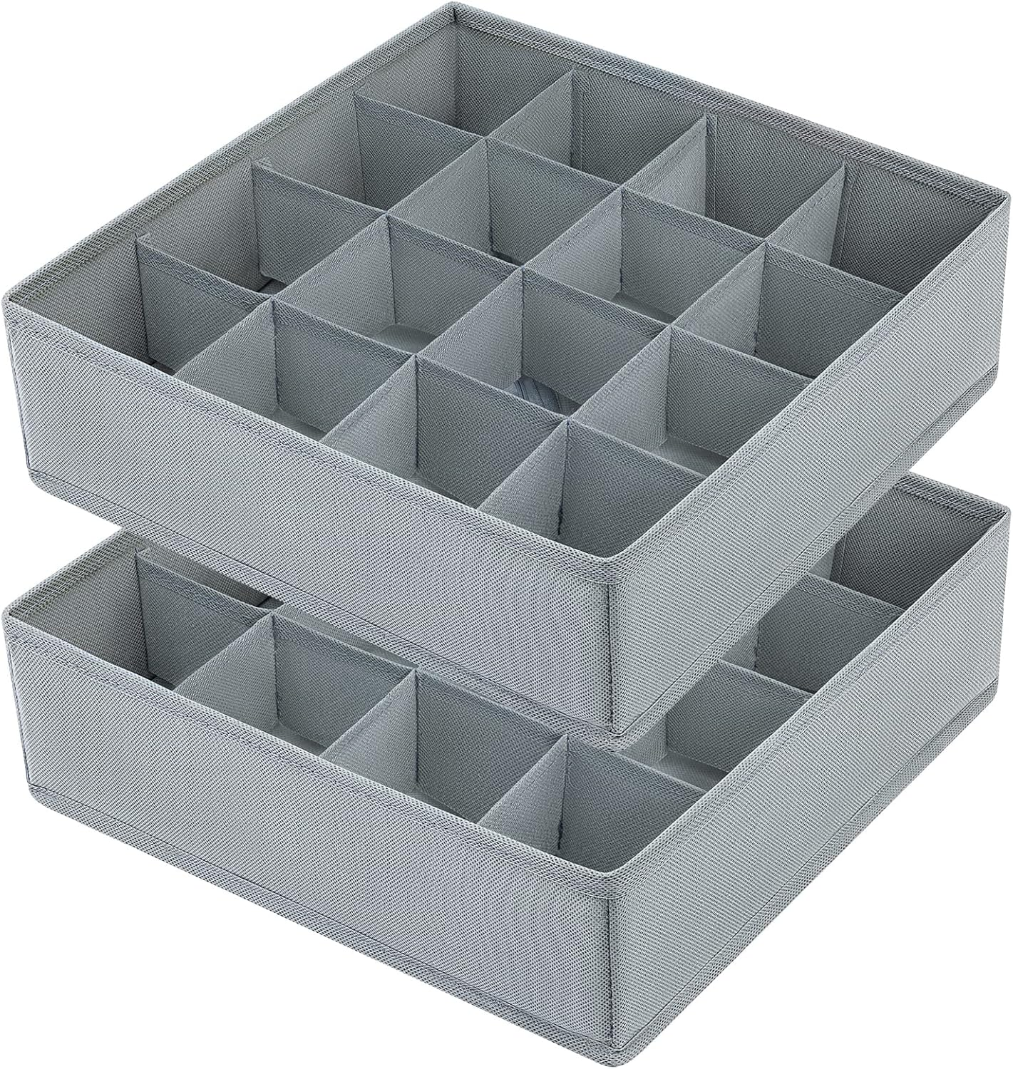 - 【Multi-purpose】2-Pack socks organizer is great storage helper for socks, ties, belts, handkerchiefs, underwear, gloves, etc. It can be also used as dresser organizer, perfect for jewelry, nail polish, lipstick, other bits and bobs, keeping items neat. The 16 cells socks organizers are larger than 24/30-cell sock organizers.