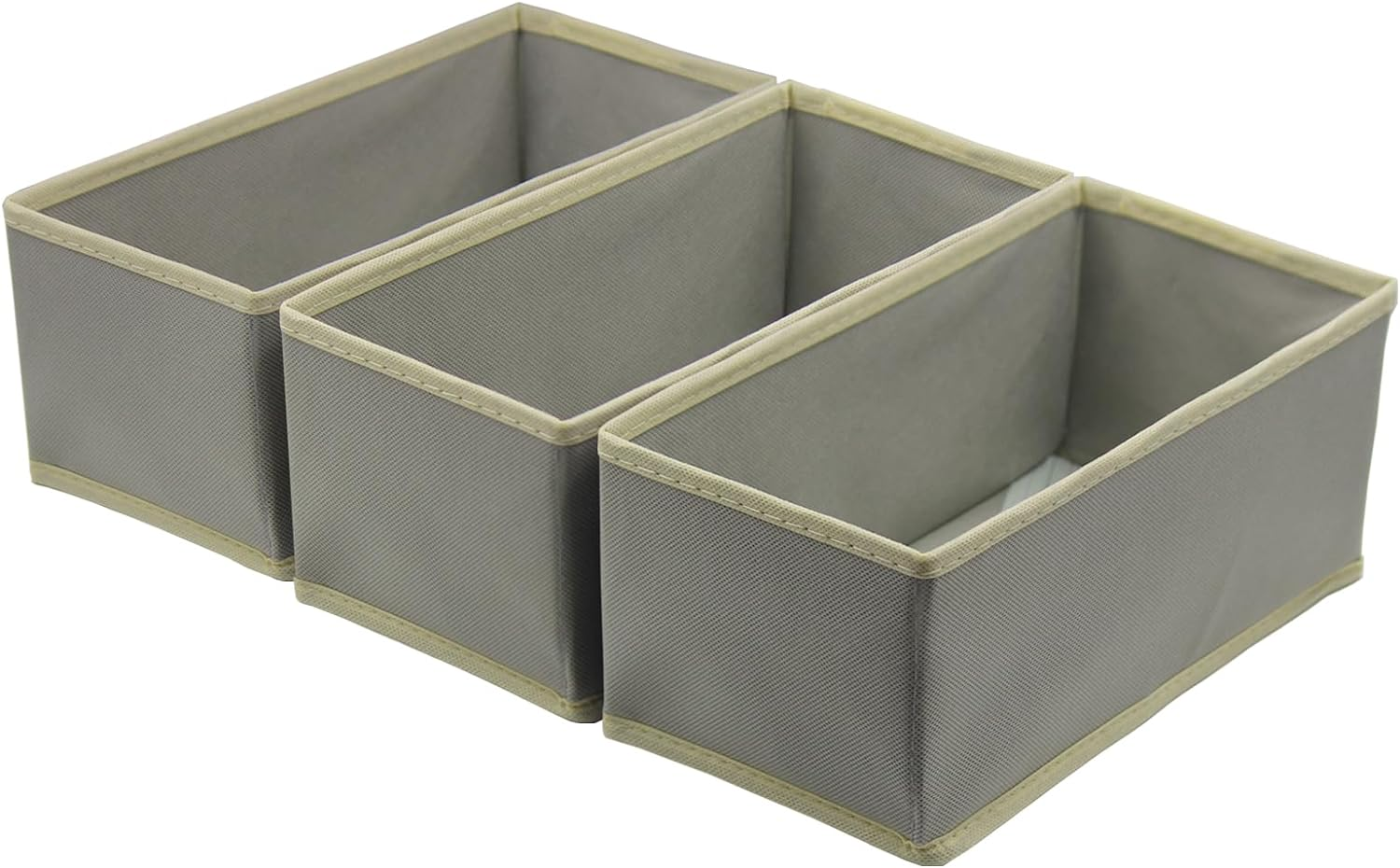 Socks Drawer Organizer Set of 3 Pack Gray, Underwear Dividers, Closet Cabinet Dresser Storage Boxes for Panties Stockings Leggings