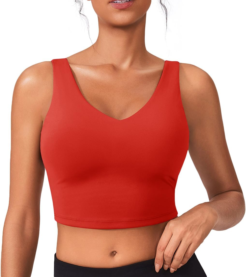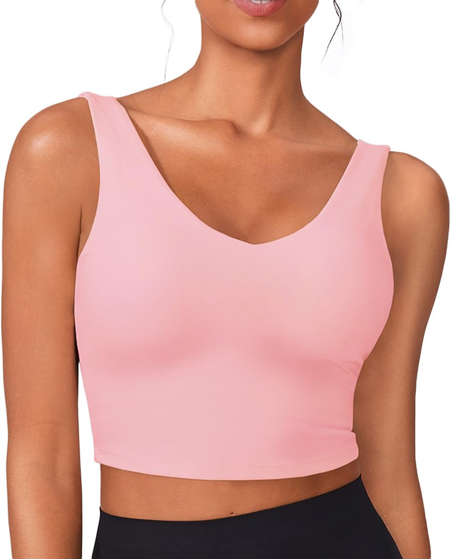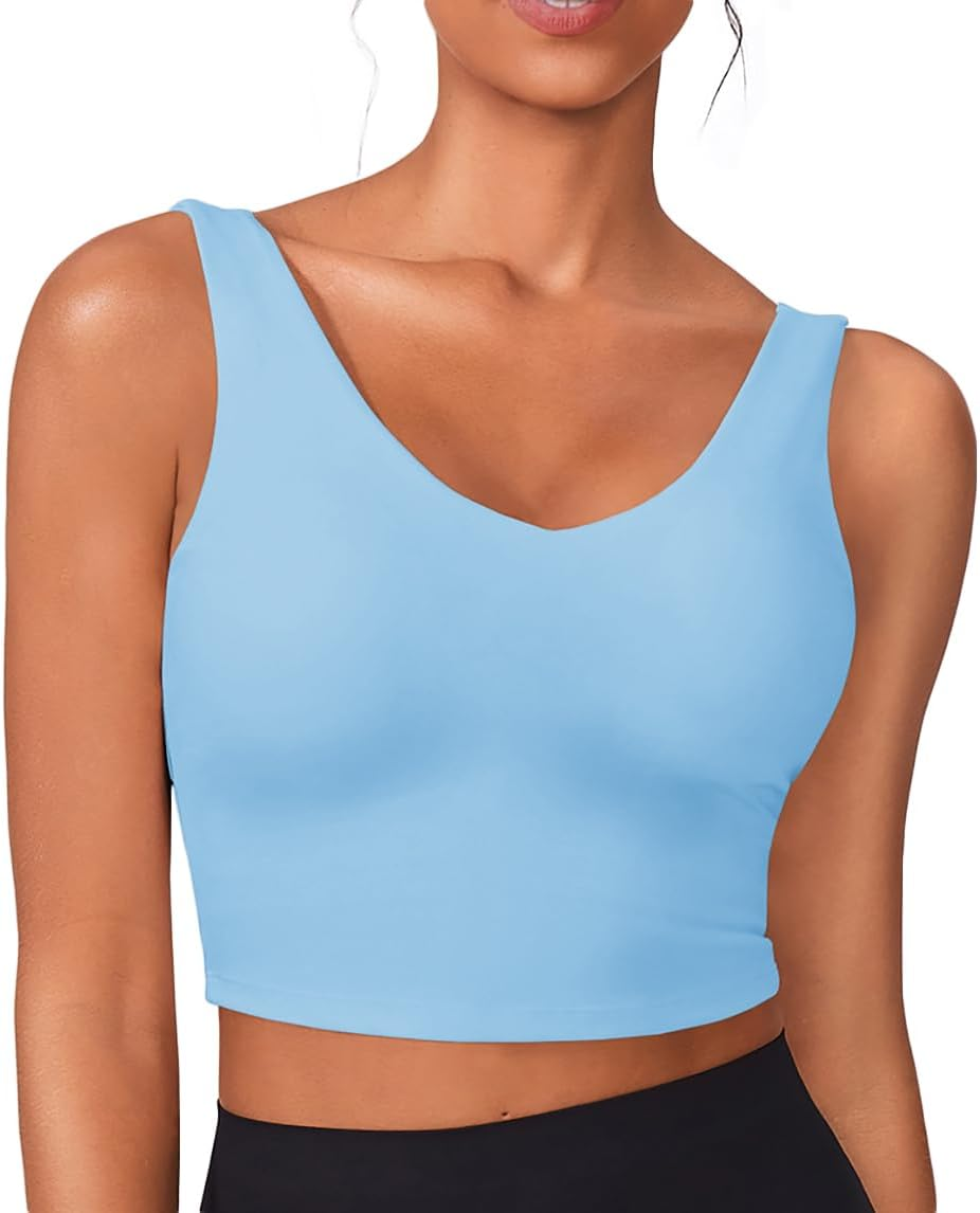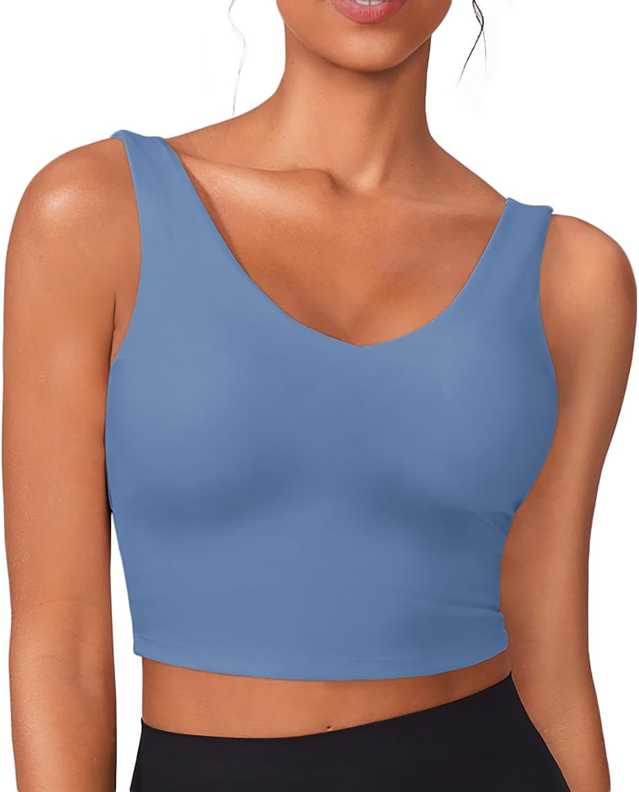 Sports Bras for Women Built in Bras Padded Yoga Bra V Neck Longline Workout Tank