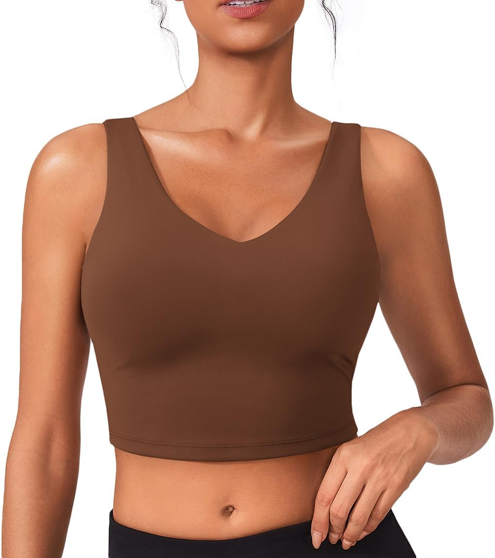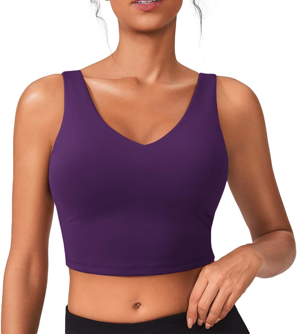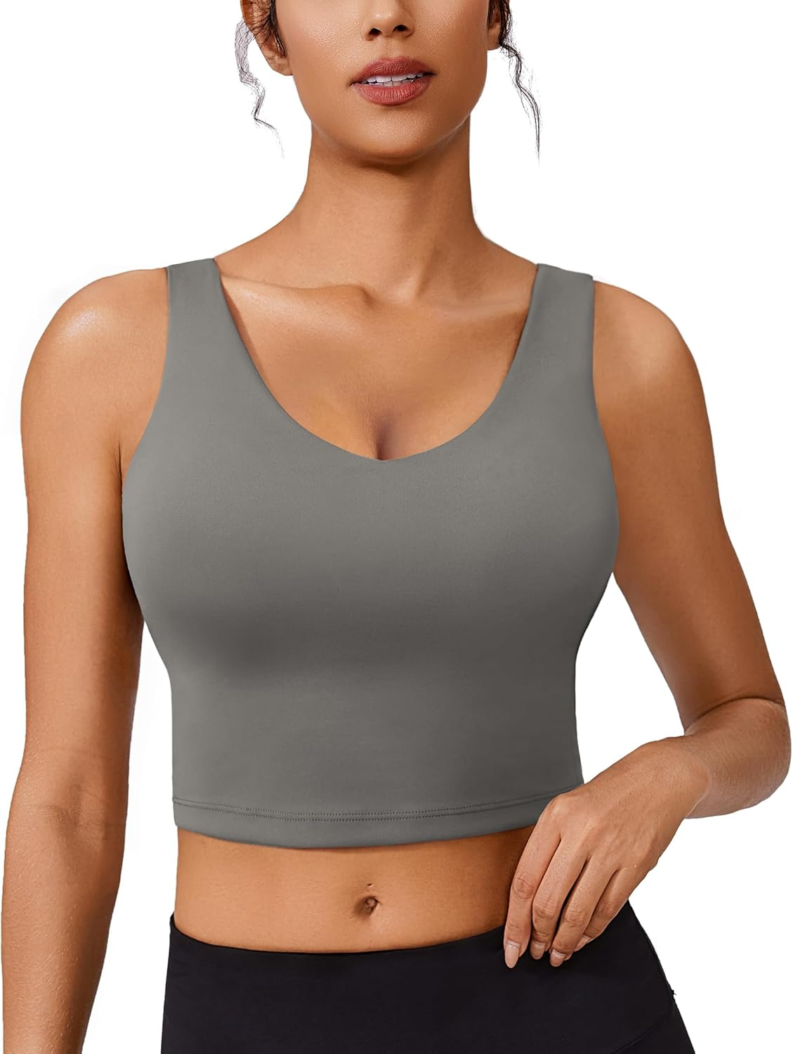 Sports Bras for Women Built in Bras Padded Yoga Bra V Neck Longline Workout Tank