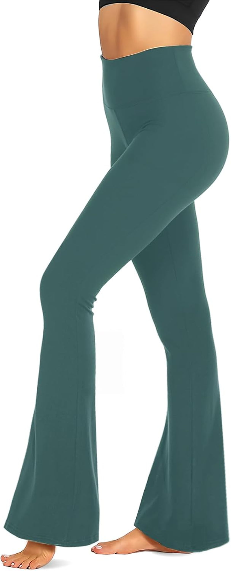 Crafted with 92% polyester and 8% spandex, the fabric feels soft like a second skin — lightweight, breathable, and squat-proof. The bootcut flare hem gives your legs a lengthened silhouette, blending ‘70s fashion inspiration with modern athleisure comfort.