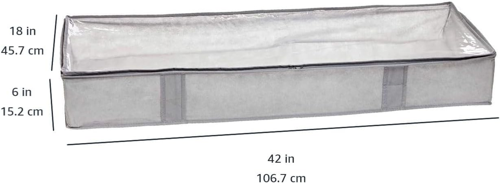 under Bed Fabric Zipper Blanket Storage Container Bags with Window and Handles, 2-Pack, 18 X 42 X 6 Inches, Gray