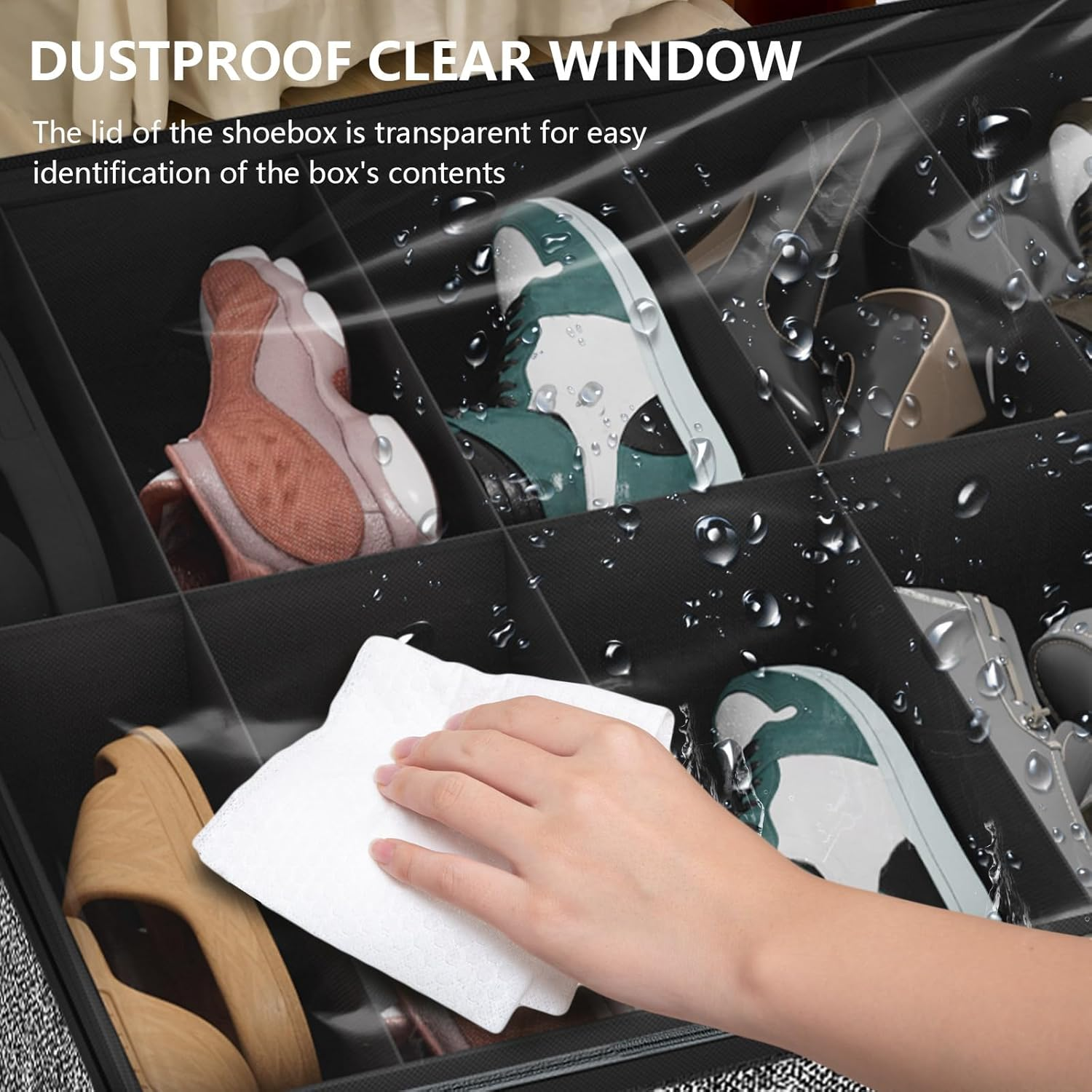 - Sturdy Premium ECO Friendly:The shoe organizer for closet made breathable durable non-woven fabrics allows items air flow and the cardboard keep the shoe box sturdy,fits 12 pairs of shoes.The whole under bed shoe storage measures 29.3 x 23.6 x 5.9 inches.