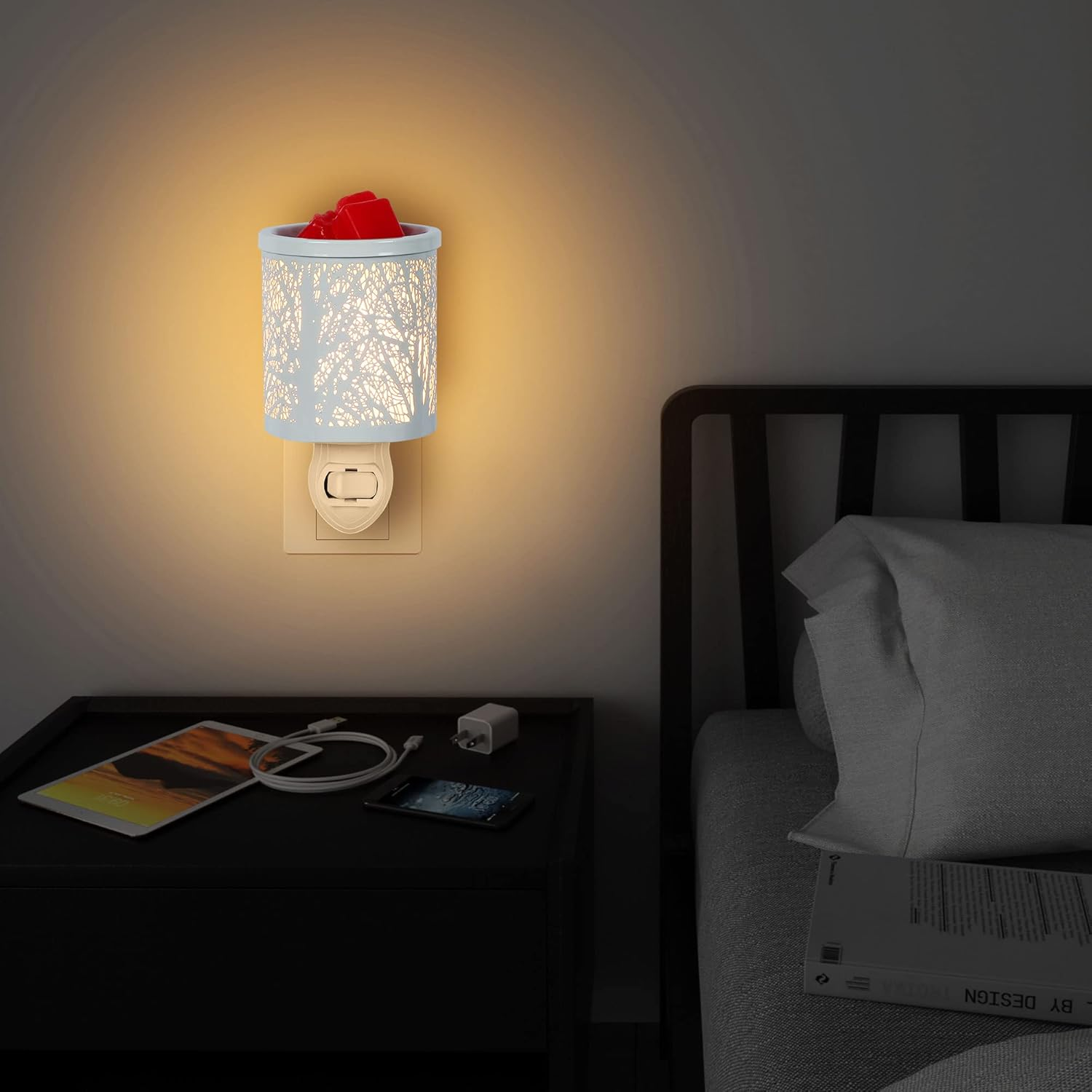 - Scented Wax Warmer and Night Light:The plug in wax burner was designed with beautiful design,adding vivid and warmer ambiance to your room; Place your favorite waxs/essential oils on the metal lid,spreading fragrance,enjoying natural and peaceful aroma farmhouse wax warmer.BTW,the also can act as night light with gentle lighting.